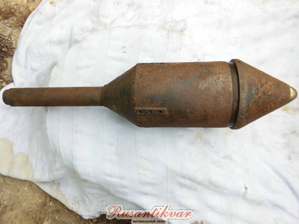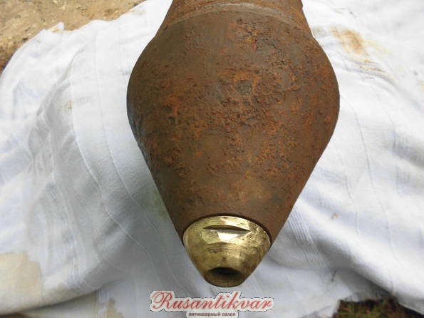 чугунная мина калибра 180 мм и весом 28 кг. Длина ее с хвостом 795 мм. Мина оснащена 8,2 кг взрывчатого вещества и ударной трубкой обр. 1916 г.