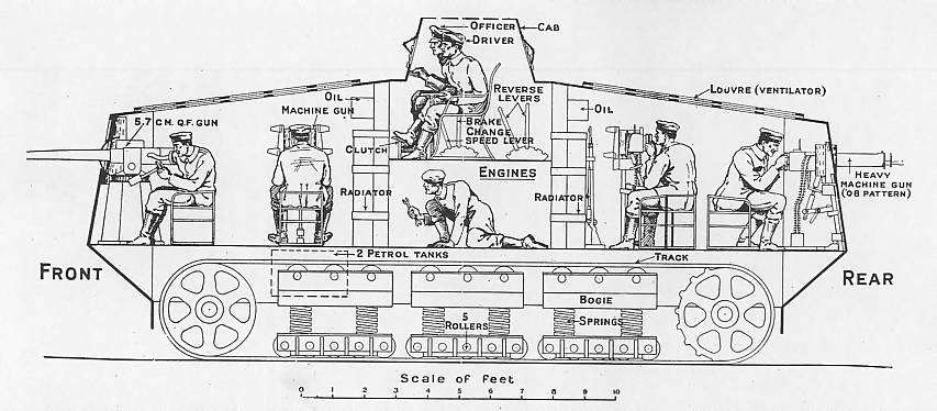 Однако, A7V оказался менее успешной боевой машиной. Он плохо преодолевал траншеи, имел высокий центр тяжести и клиренс всего 20 см.