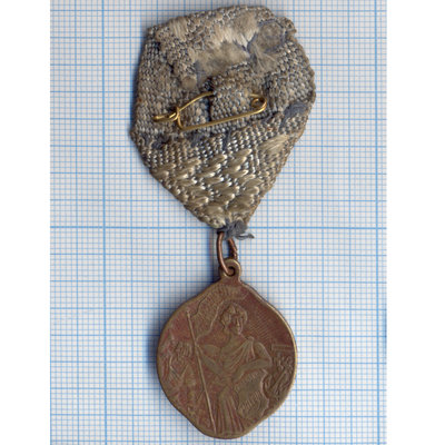 На одном из ауков продается такой жетон, редок тем что сохранился подвес, обычно они без ленты в копанном состоянии, странно правда почему лента не красная!?