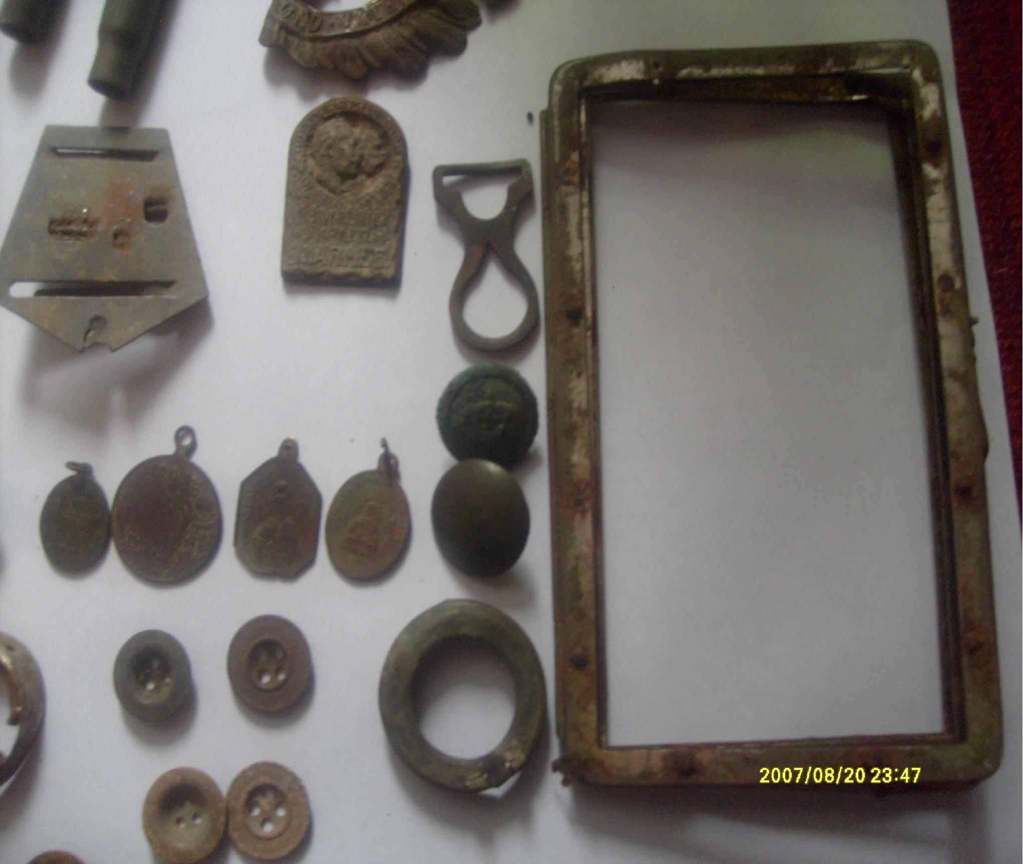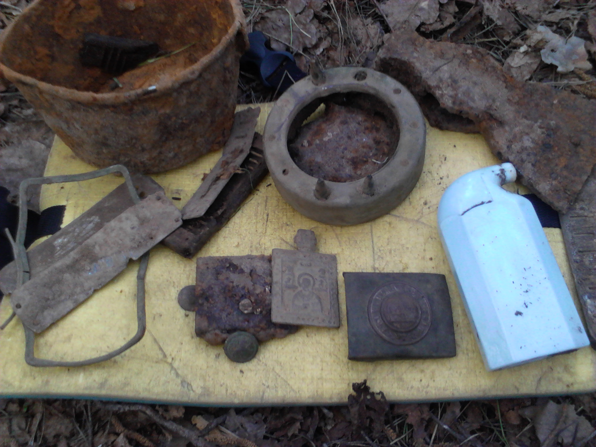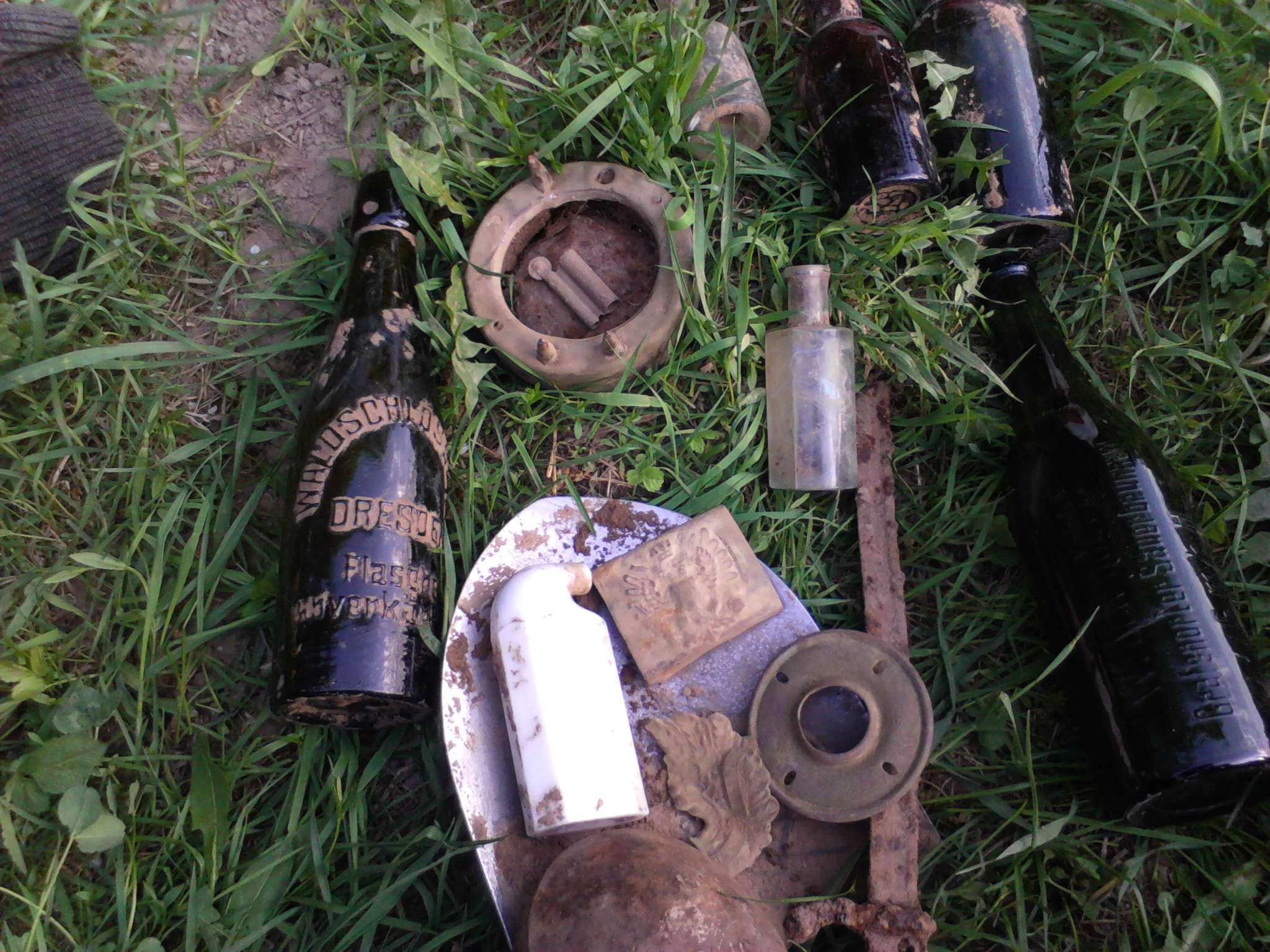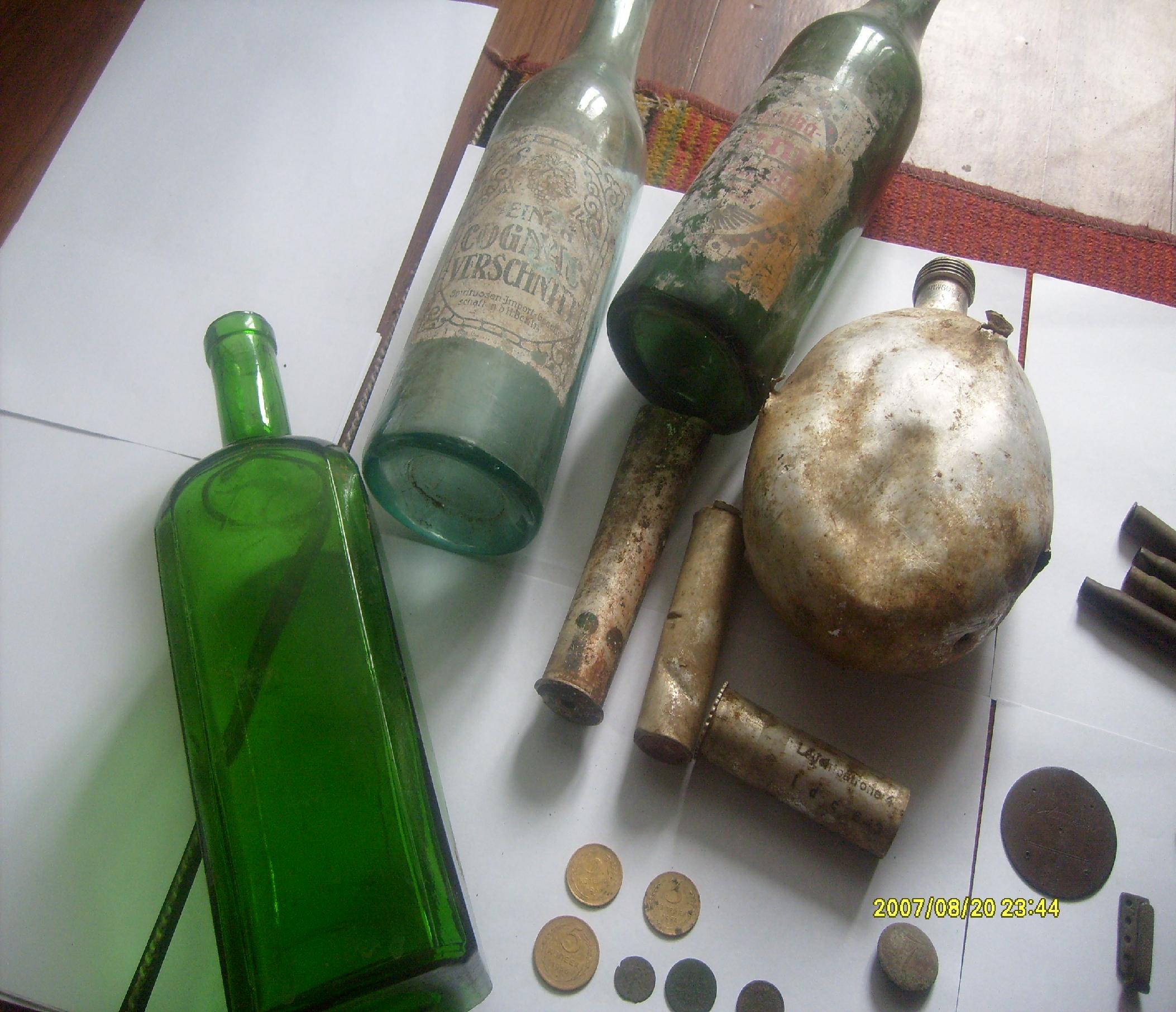 штык без рукояти, пряга без накладки, пикель без курицы, жетона половина всего...бутылки и те без надписей.так и хотелось земляному деду в лоб дать