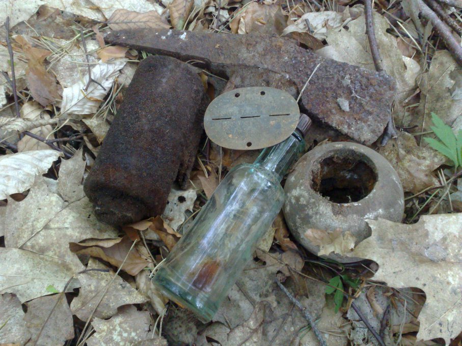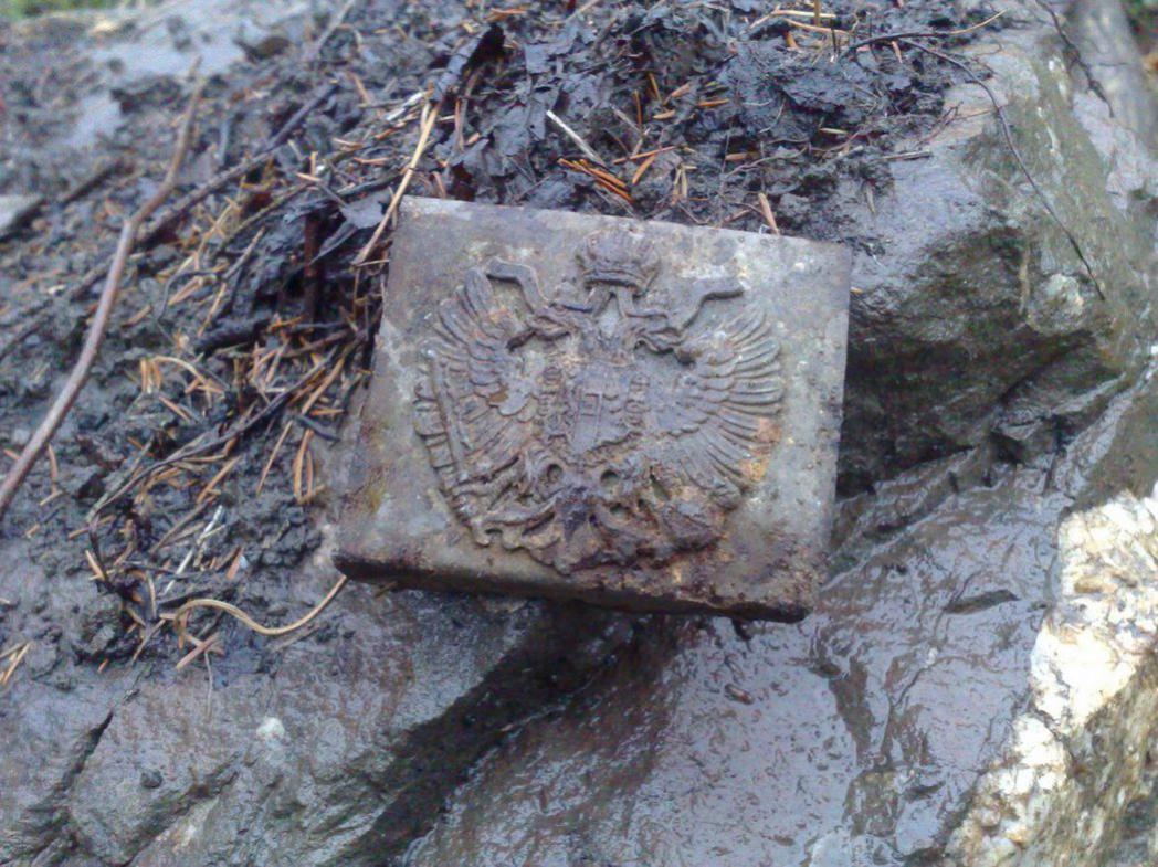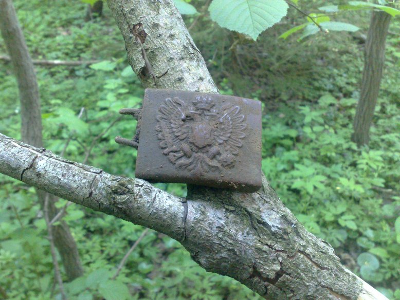 Май.Вчерашняя разведка новых мест происходила в исключительно благоприятных погодных условиях .Но так как к капризам природы мы уже привыкши,то вниз спускались темноте.Итог дня-пару пряг,фляги,фурнитура,сфотографировали только одну,находку товарища,который не зарегистрирован на форуме-редчайшую цинковую австрийскую пряжку с накладным орлом .