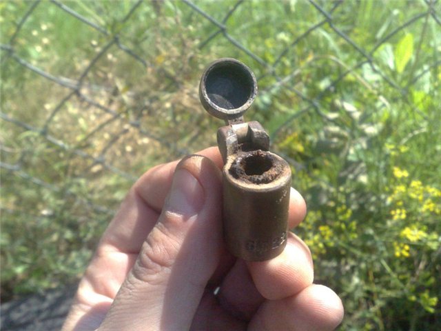 Австрийская ладанка,которая просто лежала наверху в листве.Главный сюрприз был внутри -вместо бумажки там лежал православный нательный крестик,вот такая необычная комбинация.