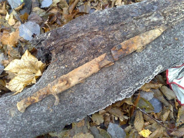 Первый бутчер в ножнах и не повезло-лежал на дороге по которой ездили лесовозы.