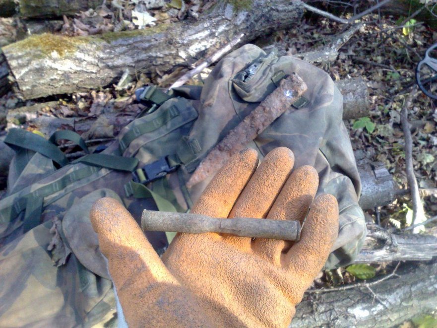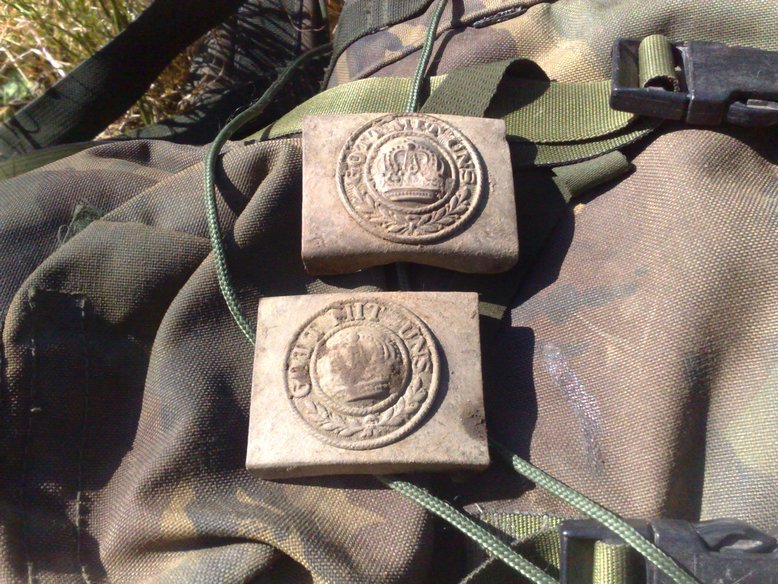 Вот еще немного за сегодня,в основном железо,огромные кусачки для колючки,попались два патрона засунутые друг в друга-кто нибудь подскажет для чего?Порадовала пряга б.Бух,у нас не частый производитель.Товарищ нашел медаль по ВОВ,у нас как всегда наслоенка