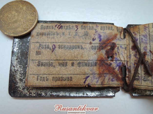 Уникальный по исполнению и редкости - жетон/ладонка с сохранившейся запиской бойца 260го полка. Он найден не один, можно смело говорить что такие были у многих бойцов этого полка.