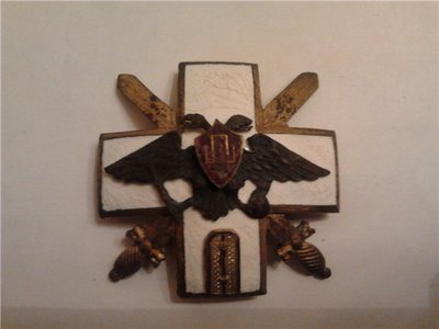 Вот маленький коллаж вышел, Знак Лейб Гвардии саперного батальона и саперная пряжка оба предмета "обезглавлены" радующимися "свободе" саперами в 1917году.