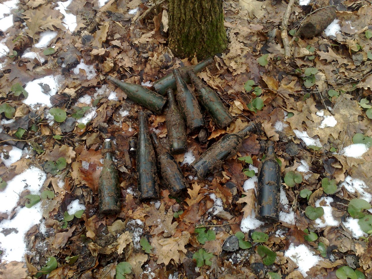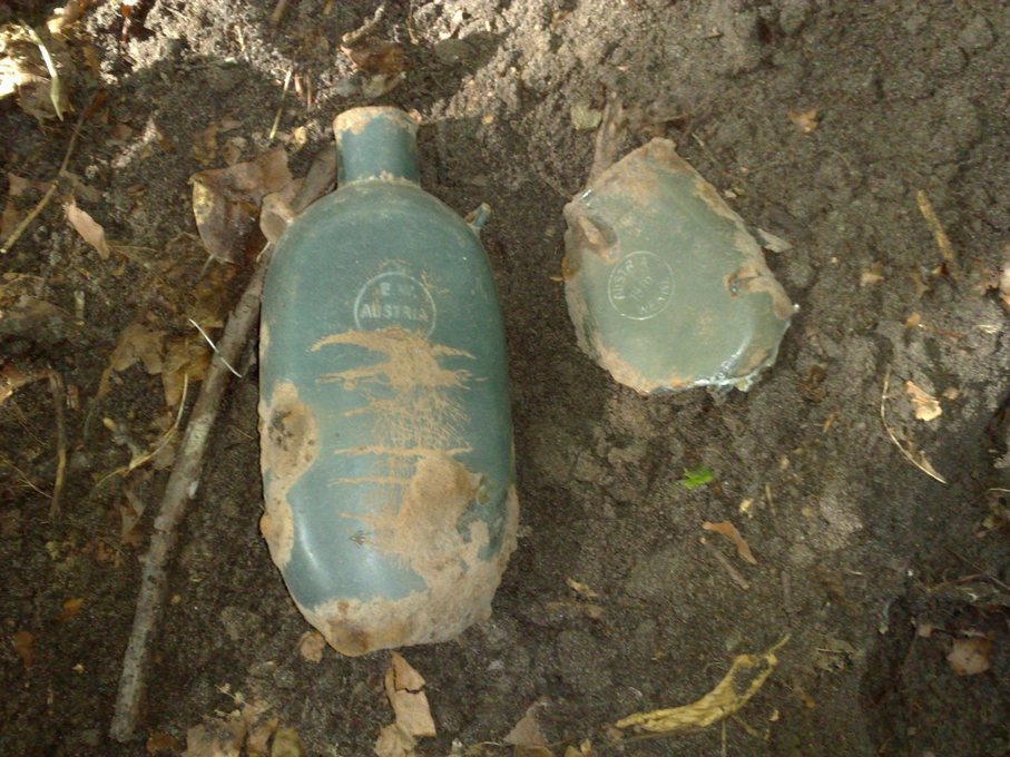 Немцы народ педантичный,шрапнельники не оставляли валятся среди окопов,закопали в мусорку,благодаря чему и зацепил стекло
