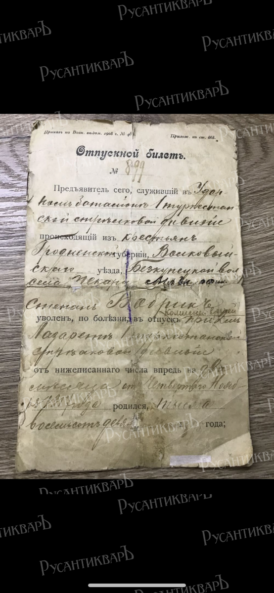 Очень интересный и редкий отпускной билет ударника Туркестанской дивизии.