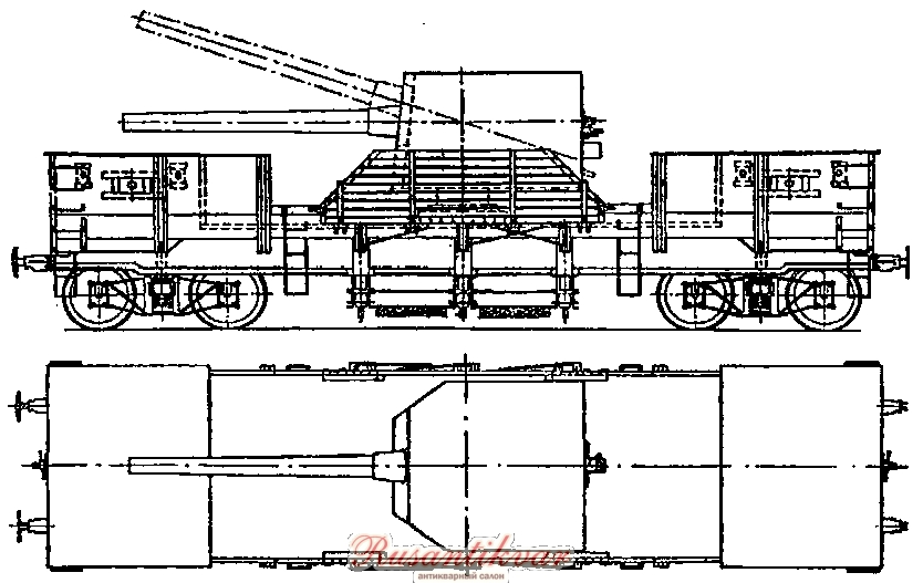 Схема 53. 152/45-мм пушка Кане на железнодорожной установке Севастопольского морского завода. Такие установки входили в состав тяжелых бронепоездов Добровольческой армии.