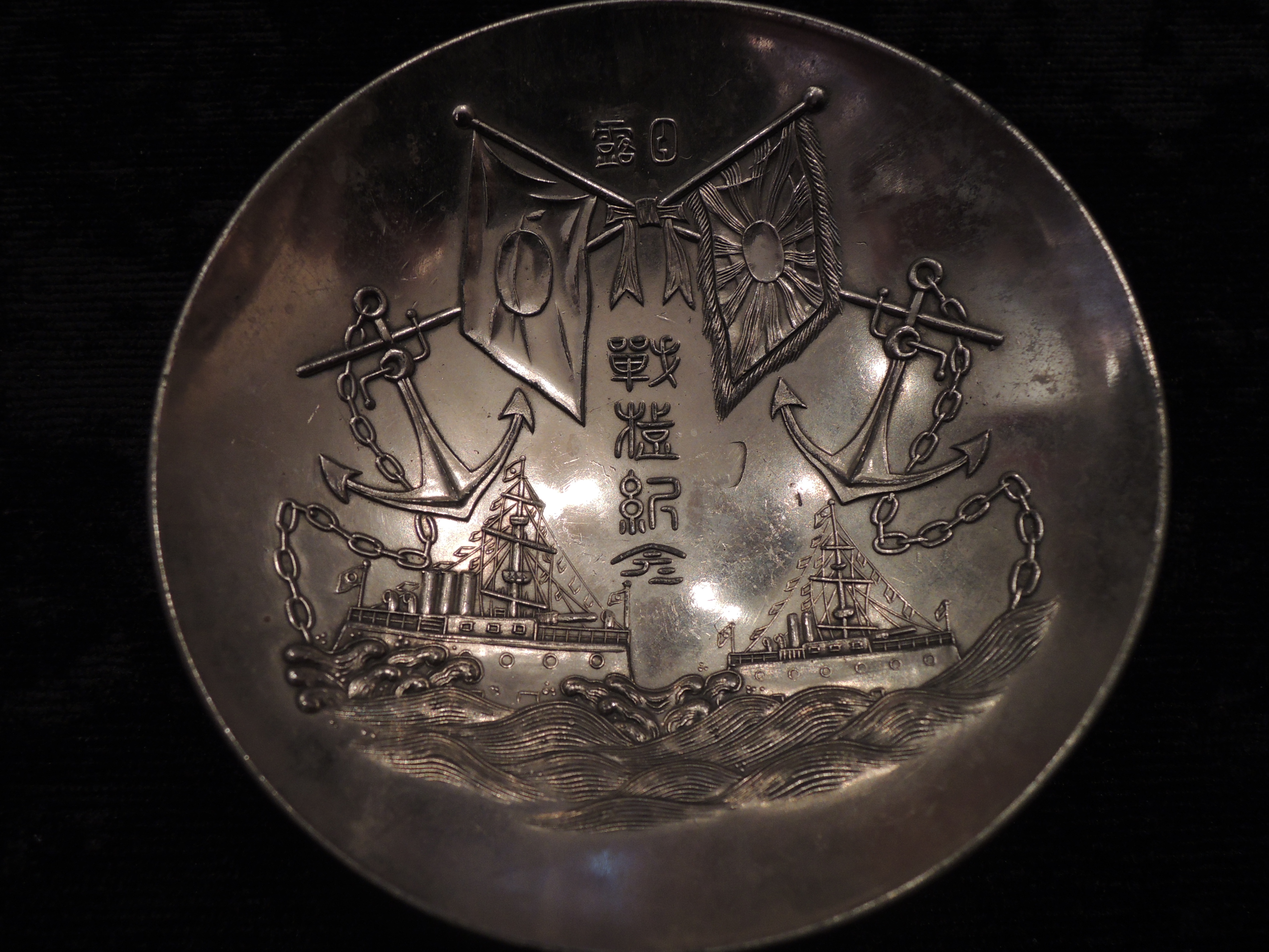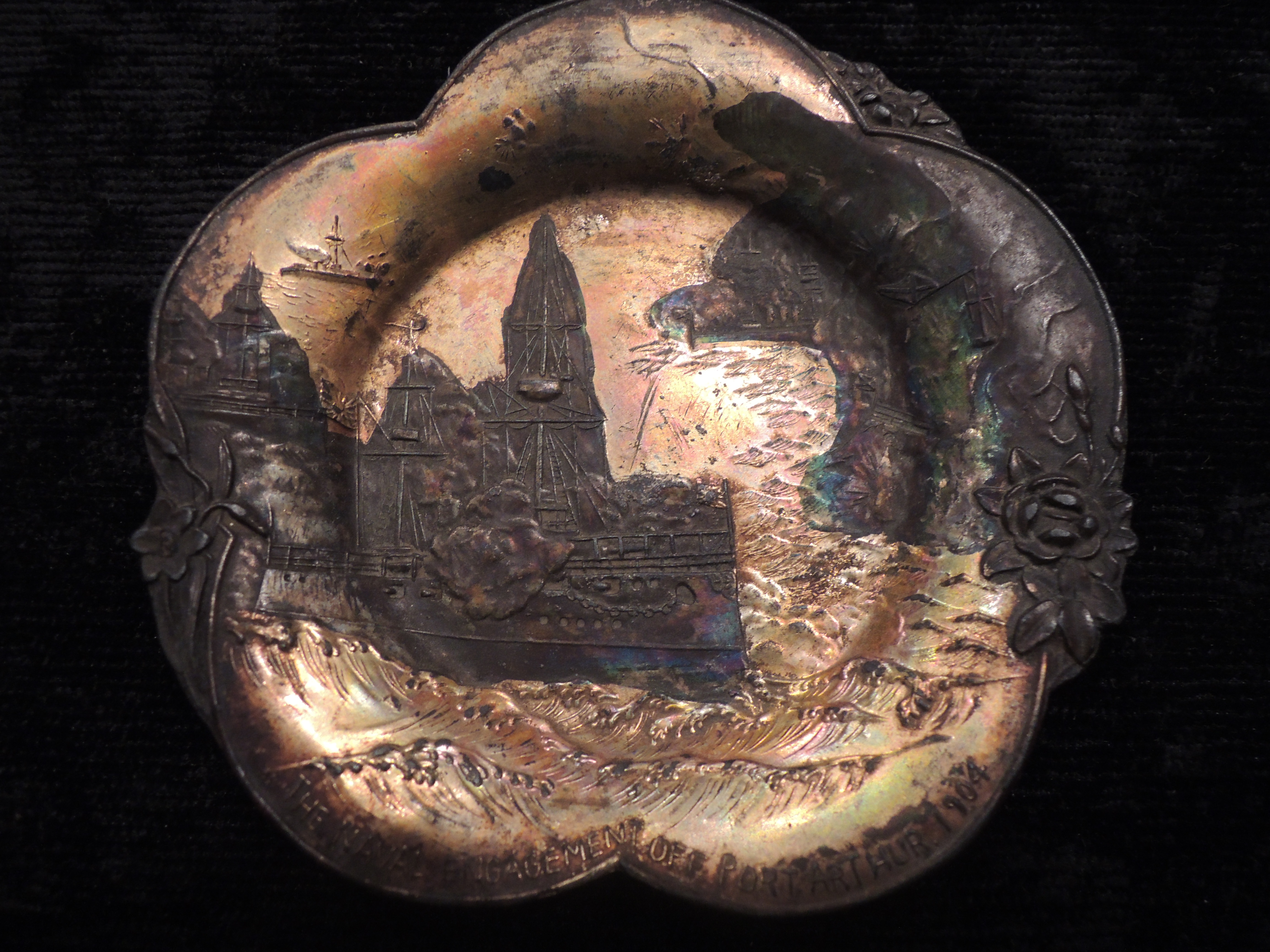 Металлические посеребренные блюдца под сакешница на Русско-Японскую