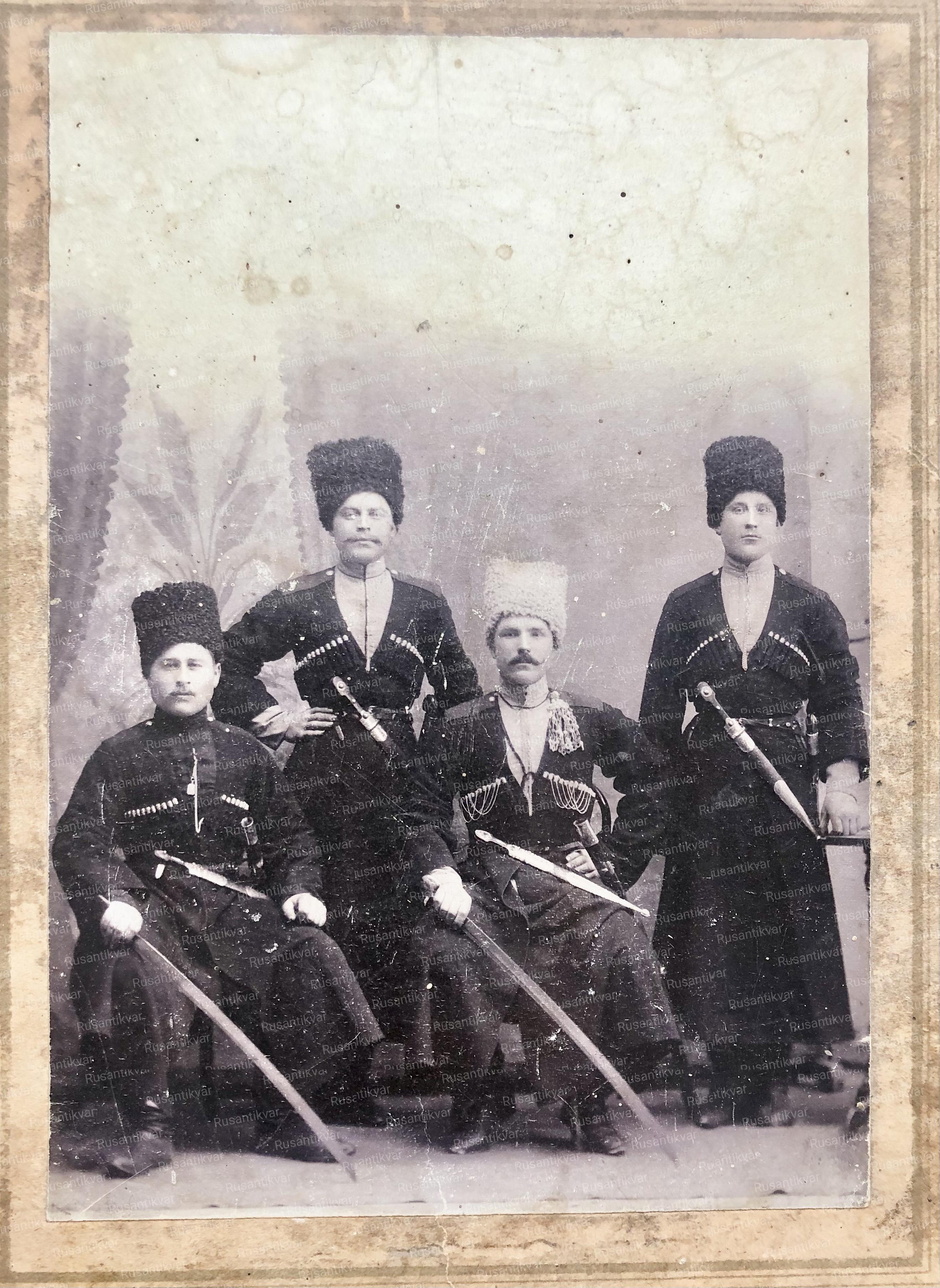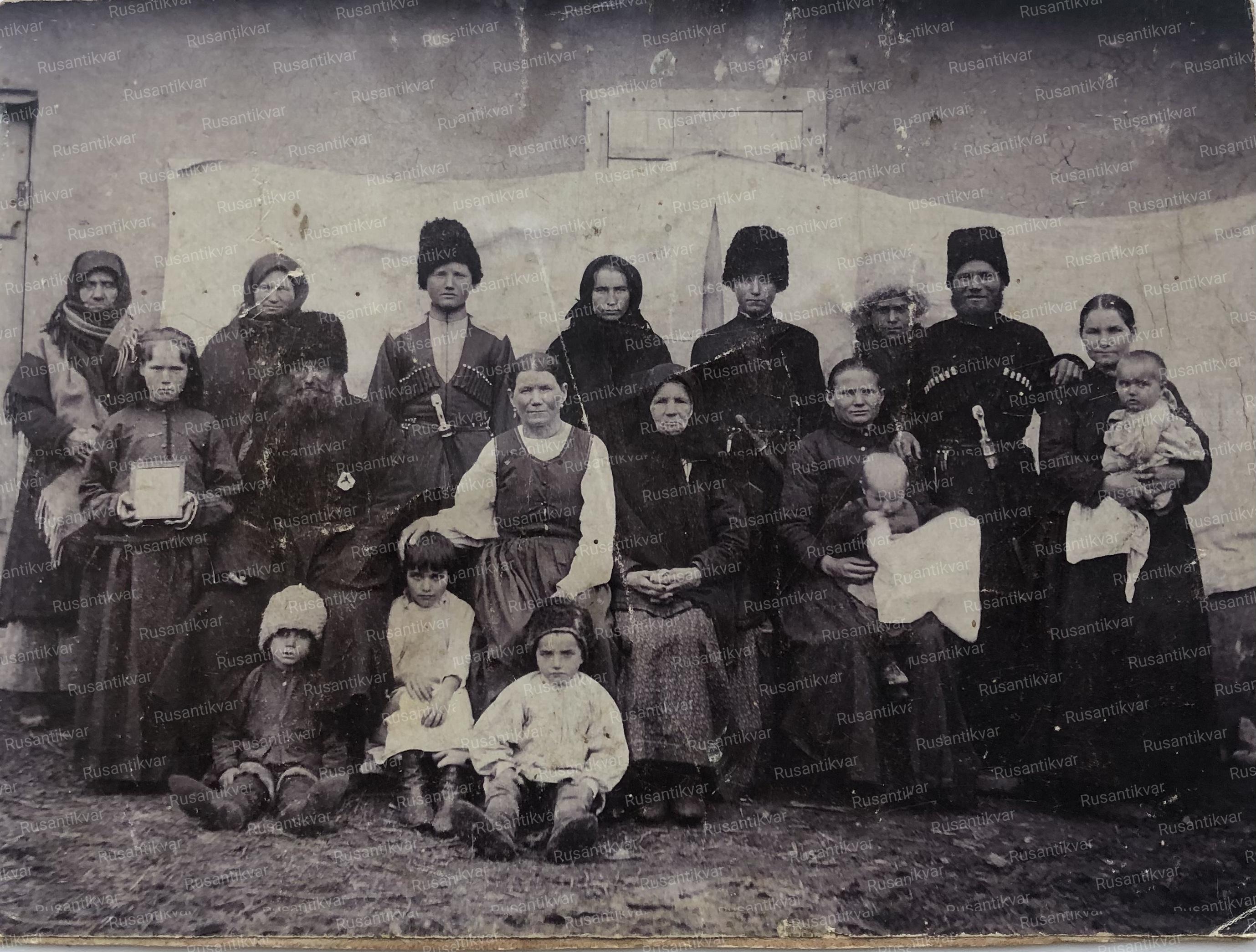 Казачья семья.На погонах шифровка 1-го Сунженско-Владикавказского полка ТКВ.