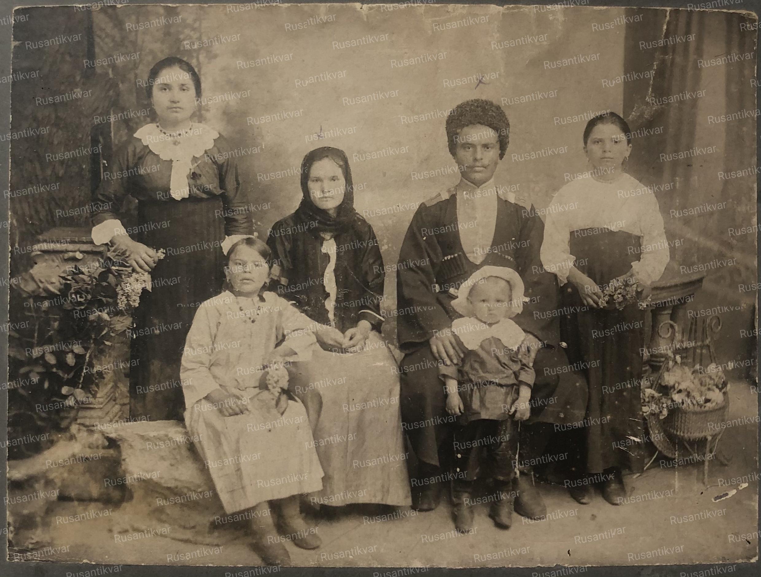 Семья терского казака.На погонах шифровка 1-го Волгского полка ТКВ.