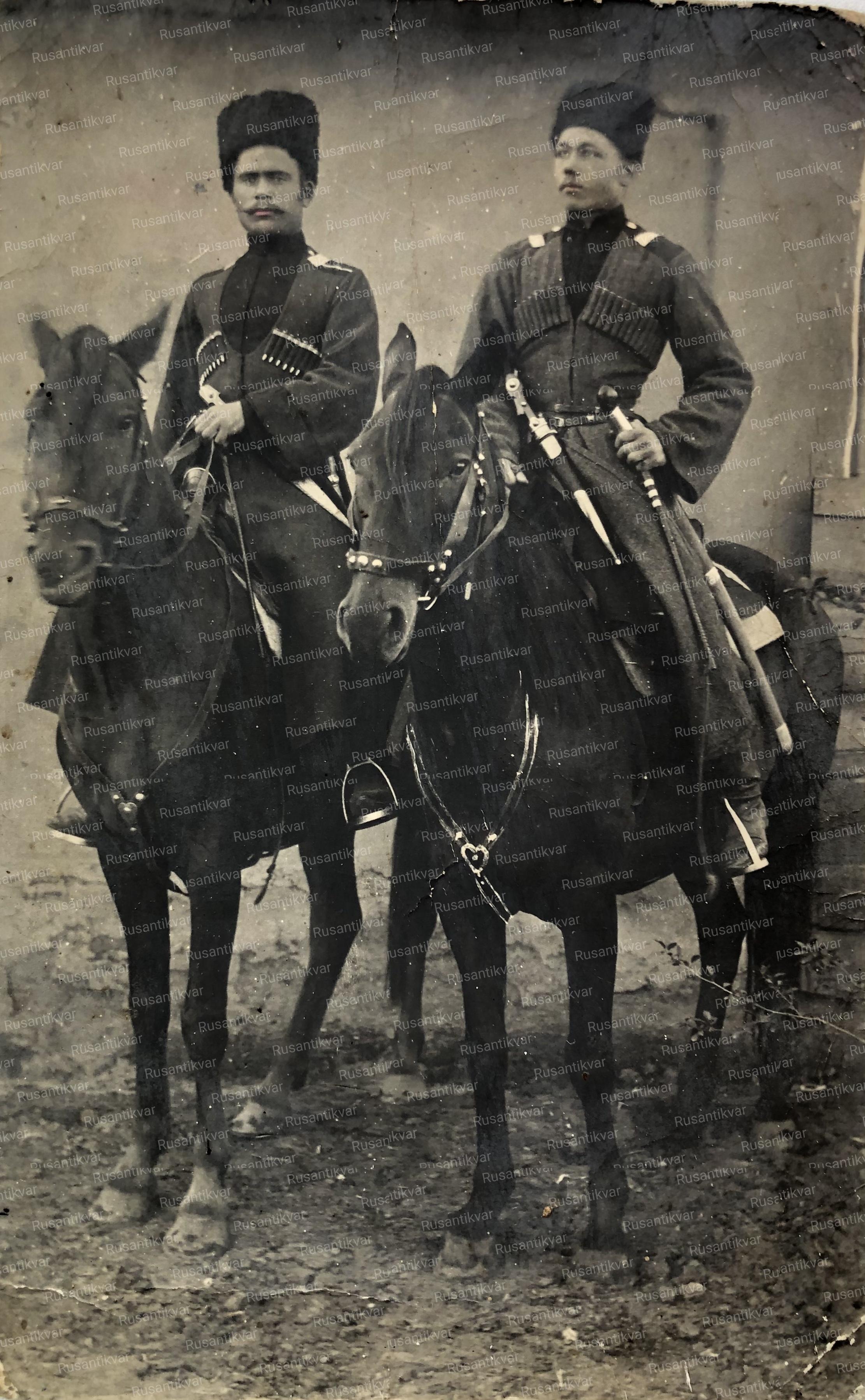 Фотография казаков 6-го Донского казачьего полка.Крестиком помечен казак Шведчиков Василий Иванович.