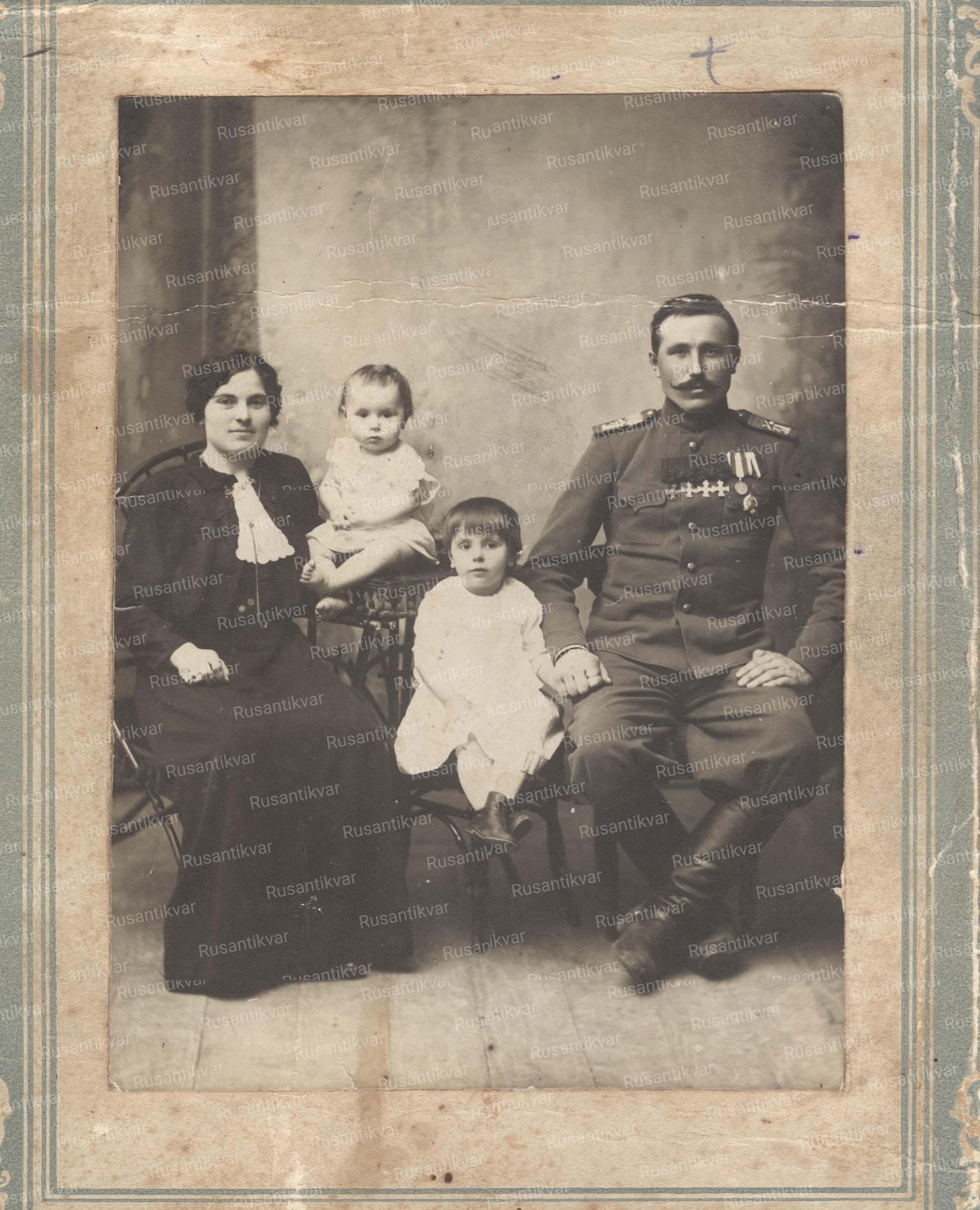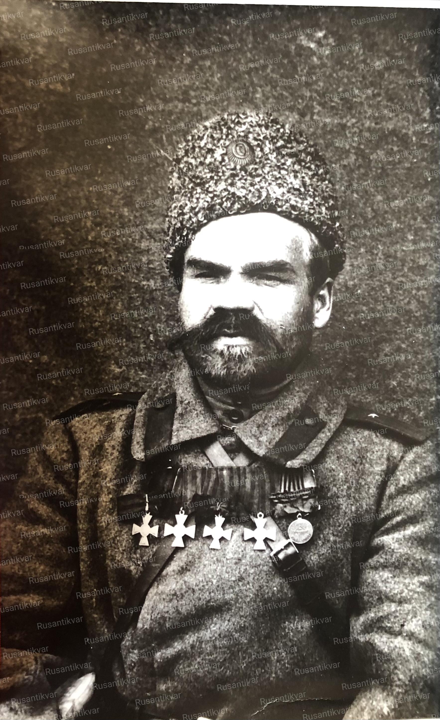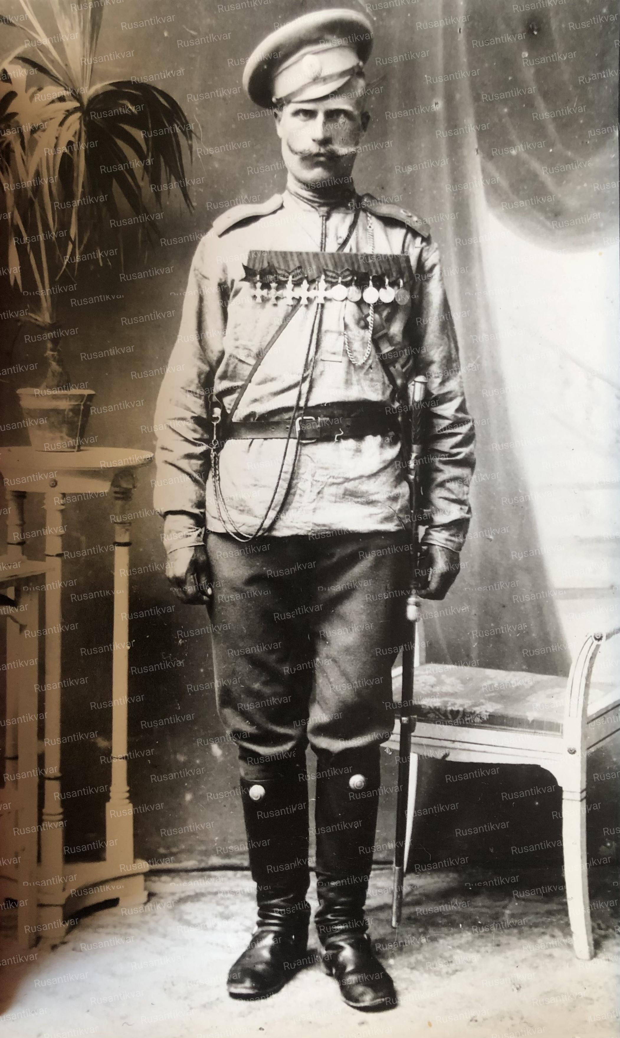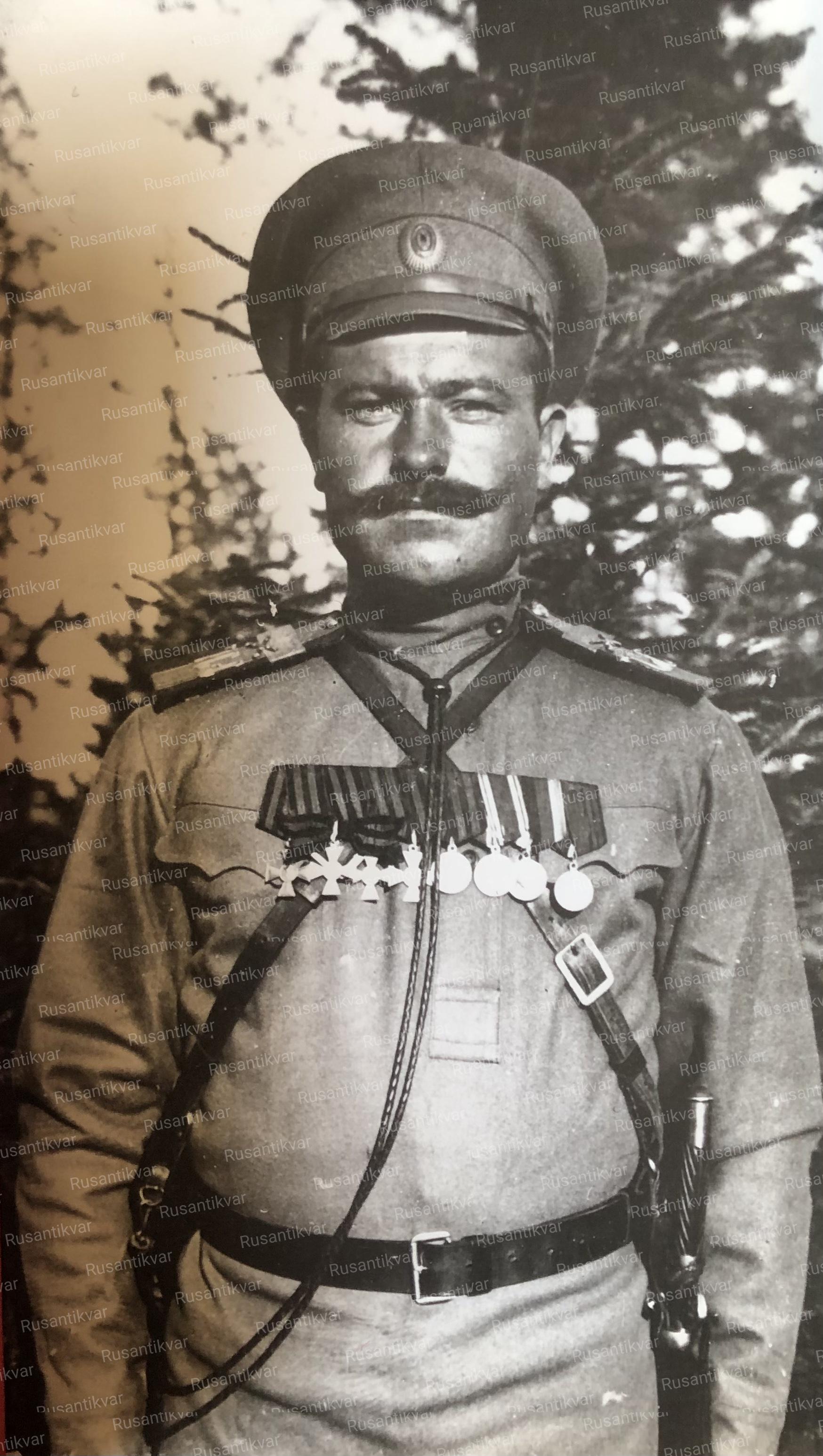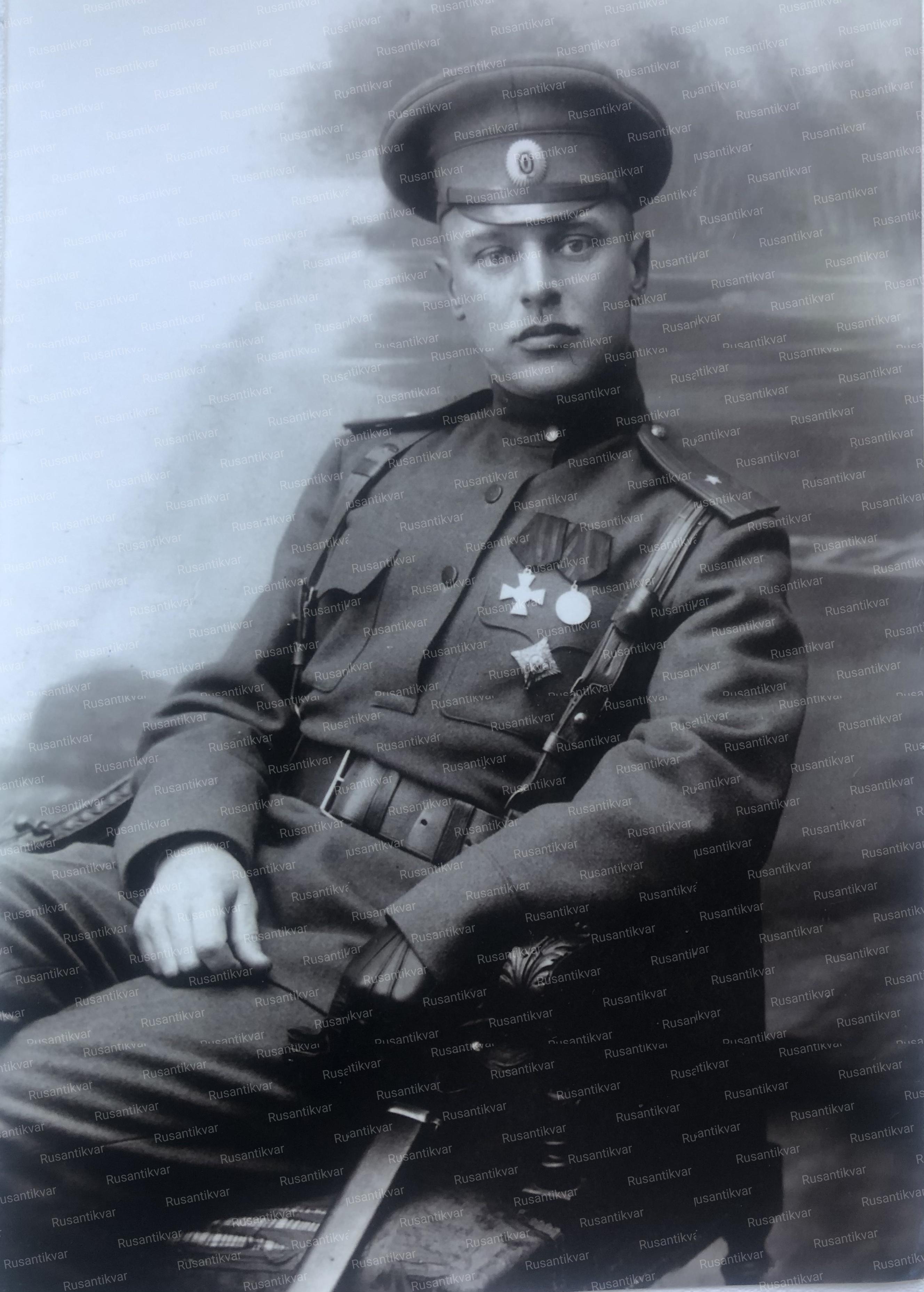 Прапорщик кавалер солдатского Георгиевского креста и Георгиевской медали 4-х степеней со знаком об окончании Владимирского военного училища в С.-Петербурге.
