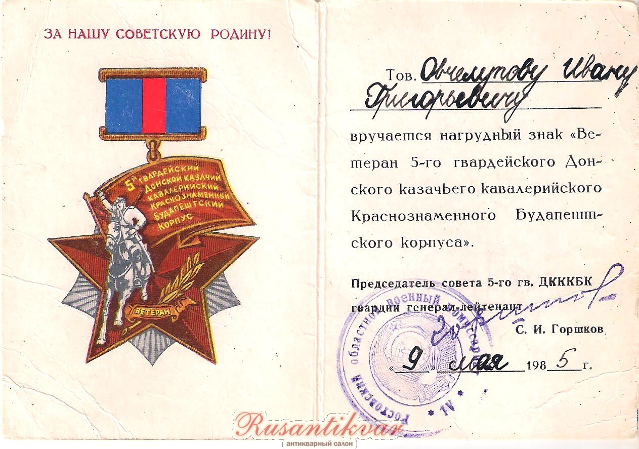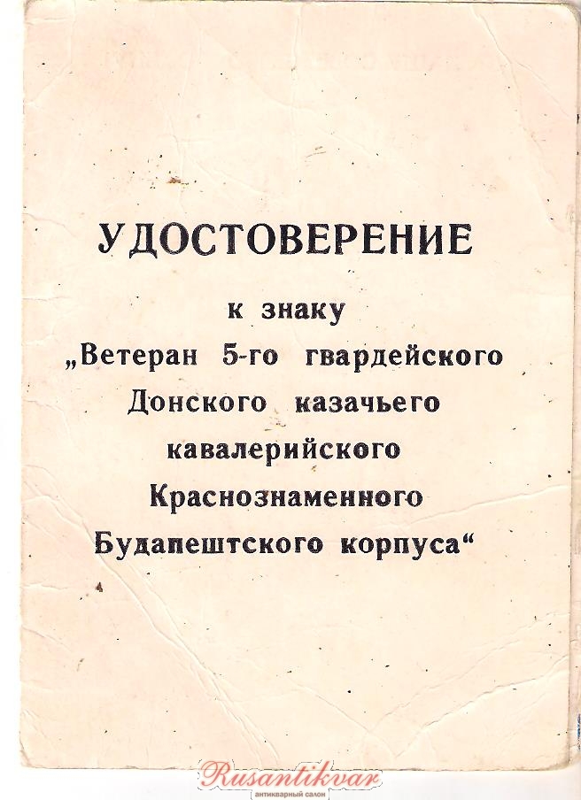 Ветеран 4-го Гвардейского Кубанского казачьего кав.корпуса.