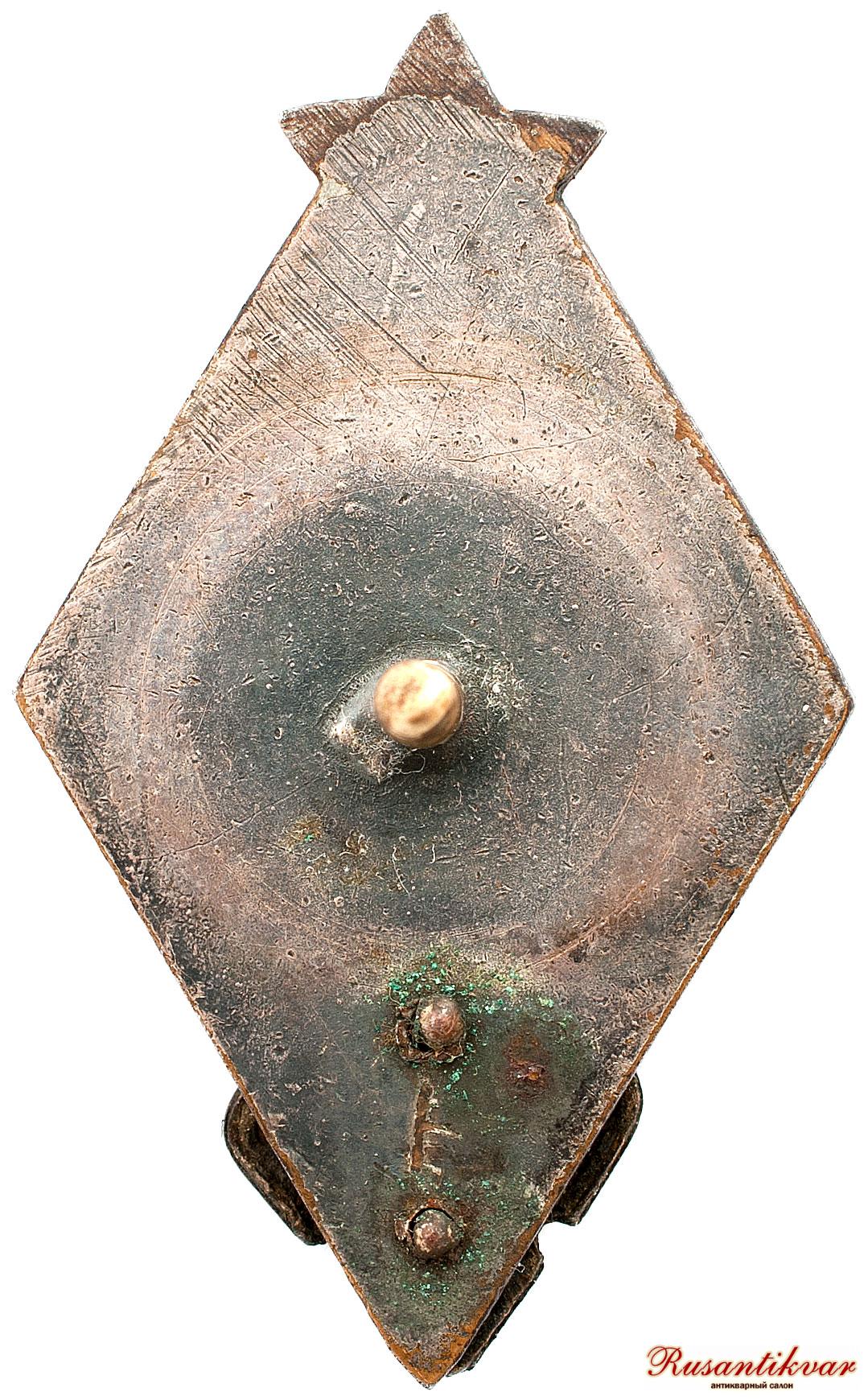 Бронза, эмаль, винт. Цельноштампованный. Контррельефный.