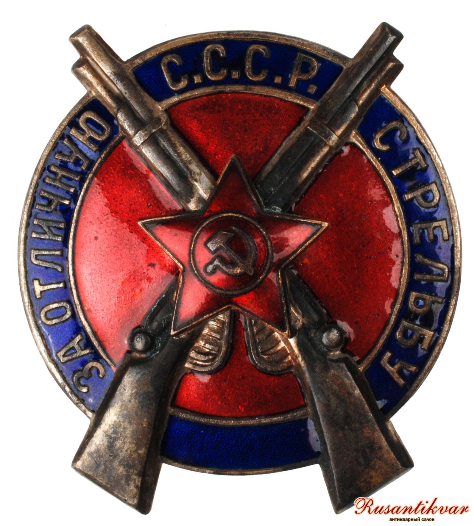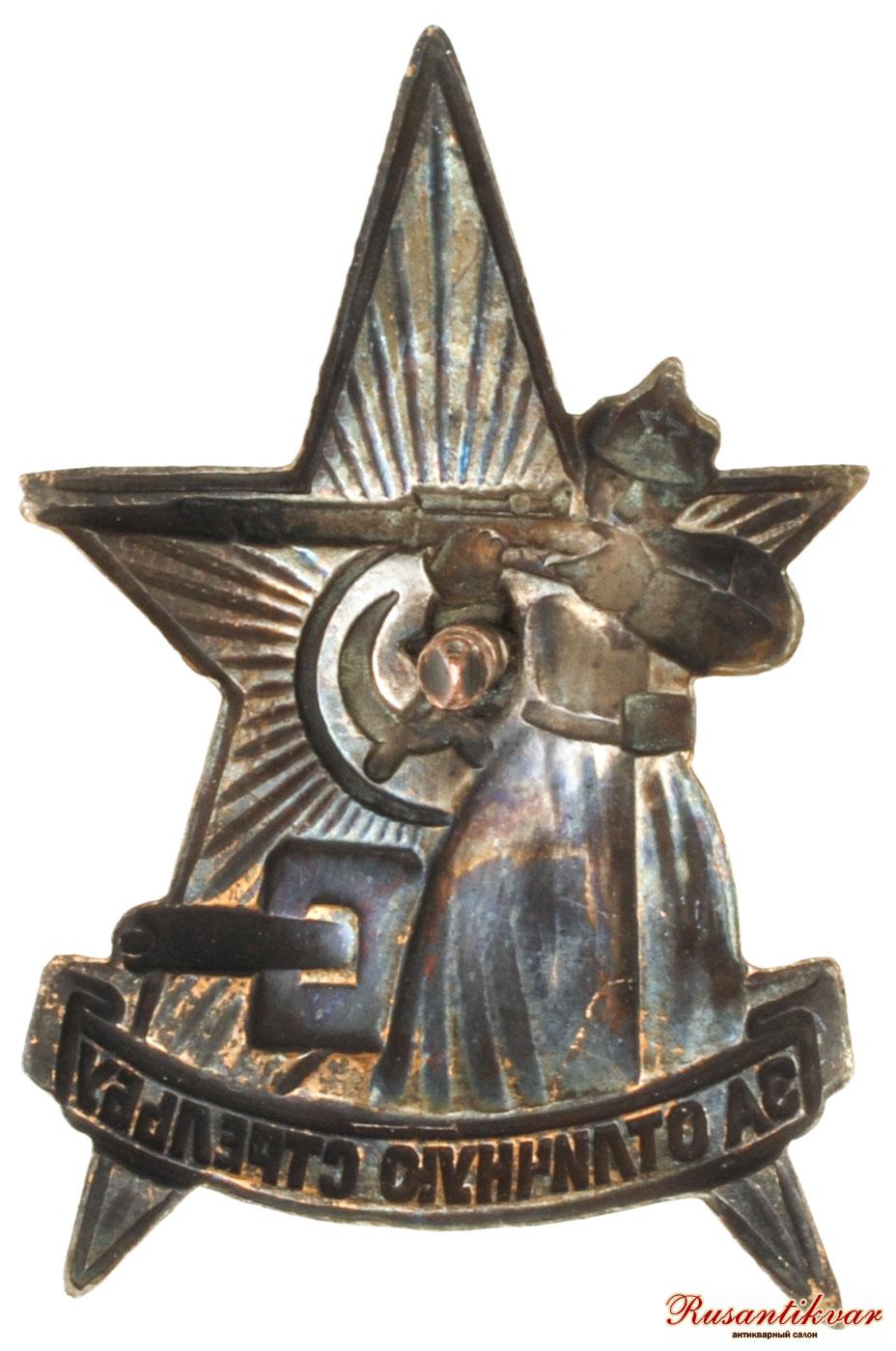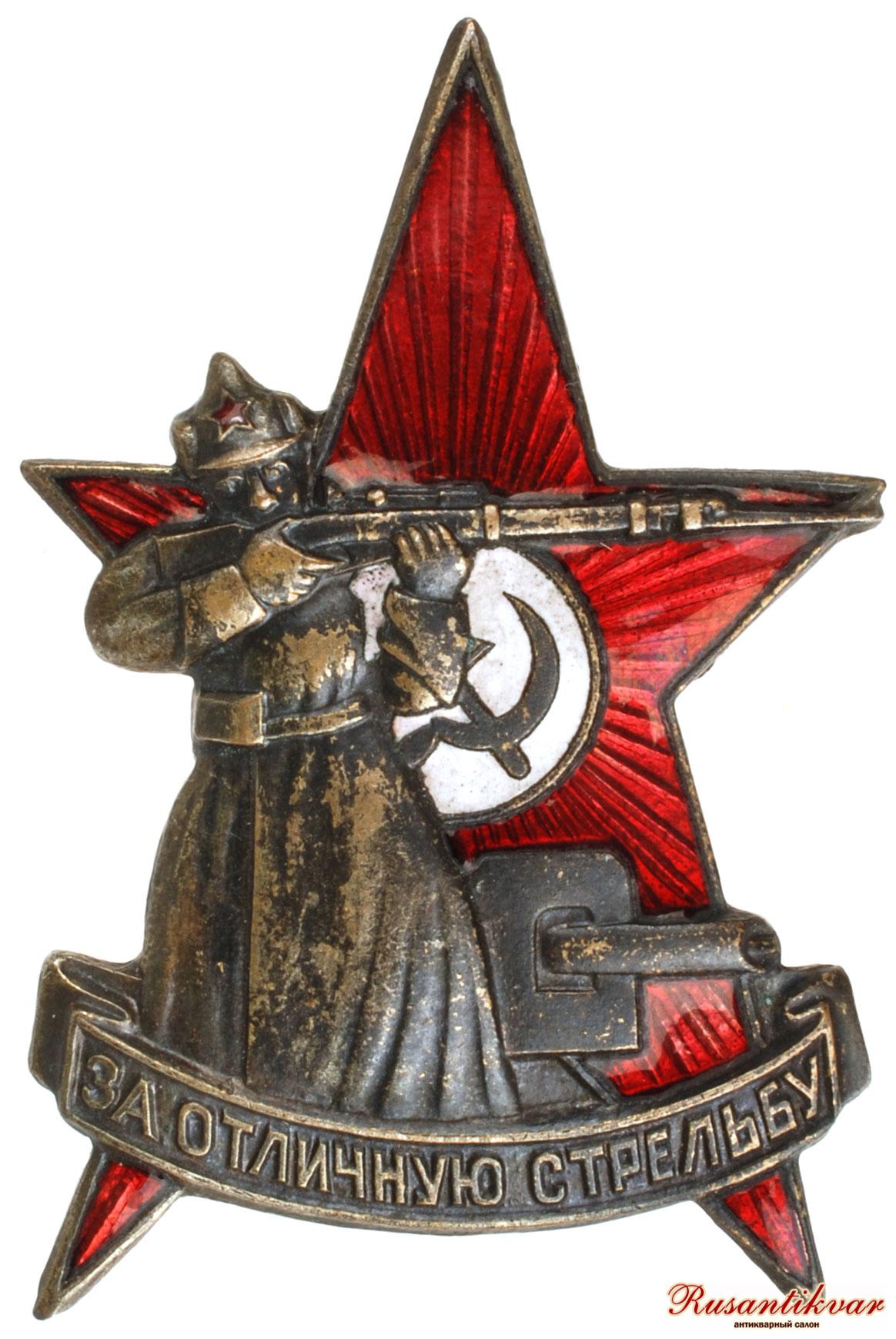 Знак «За отличную стрельбу» — нагрудный знак СССР. Учреждён приказом Реввоенсовета от 10 июля 1922 года для поощрения командного состава и рядовых красноармейцев РККА за успехи в боевой подготовке. В 1928 году разделён на 2 степени, соответствовавших первому и второму году службы военнослужащего. В 1938 году приказом наркома обороны знак получил новый внешний вид.