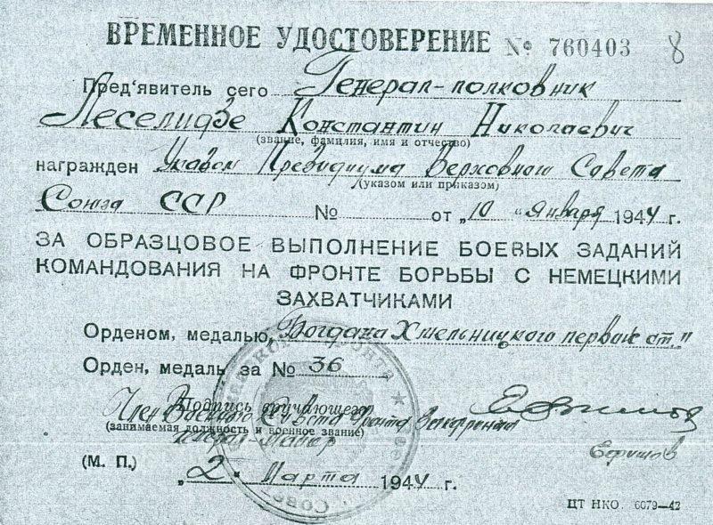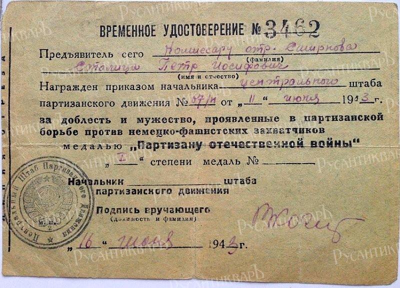 Временное удостоверения на медаль Партизану Отечественной Войны.