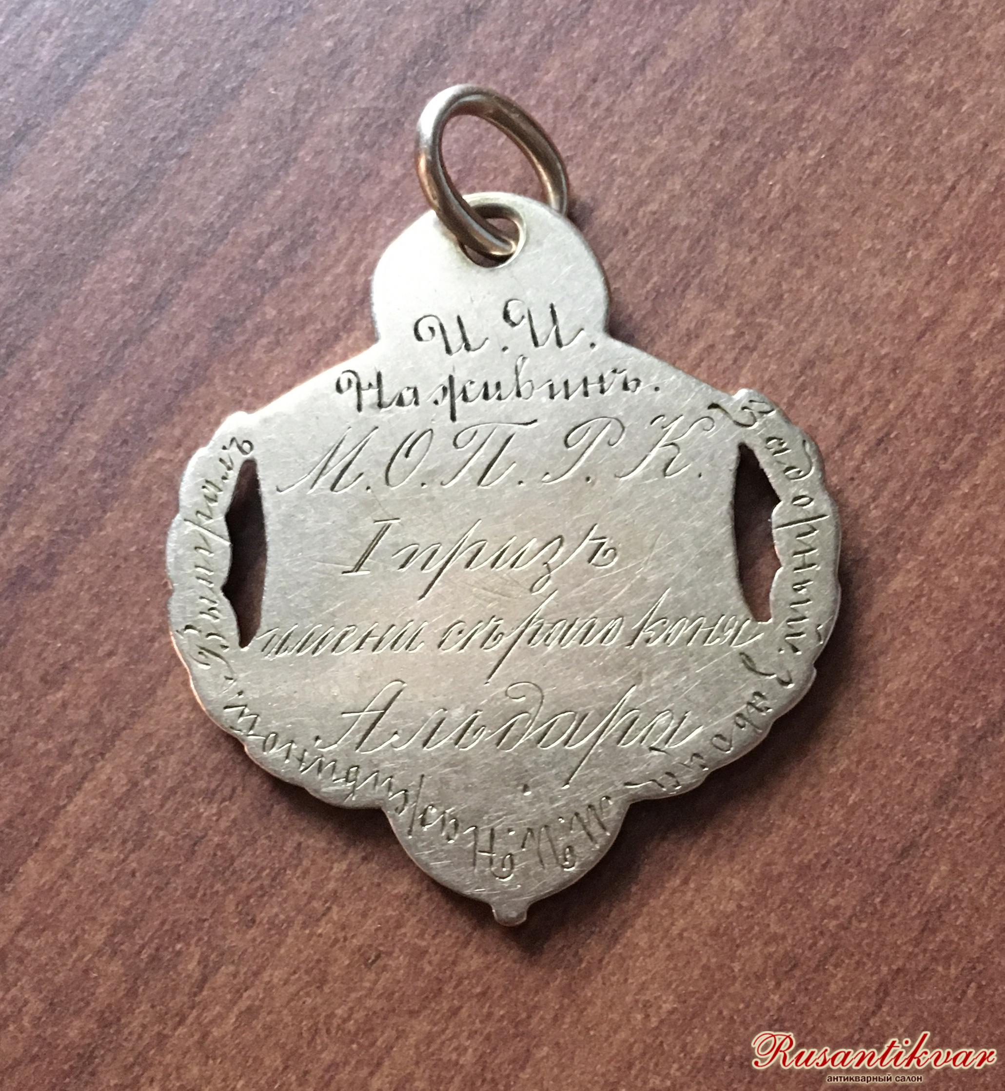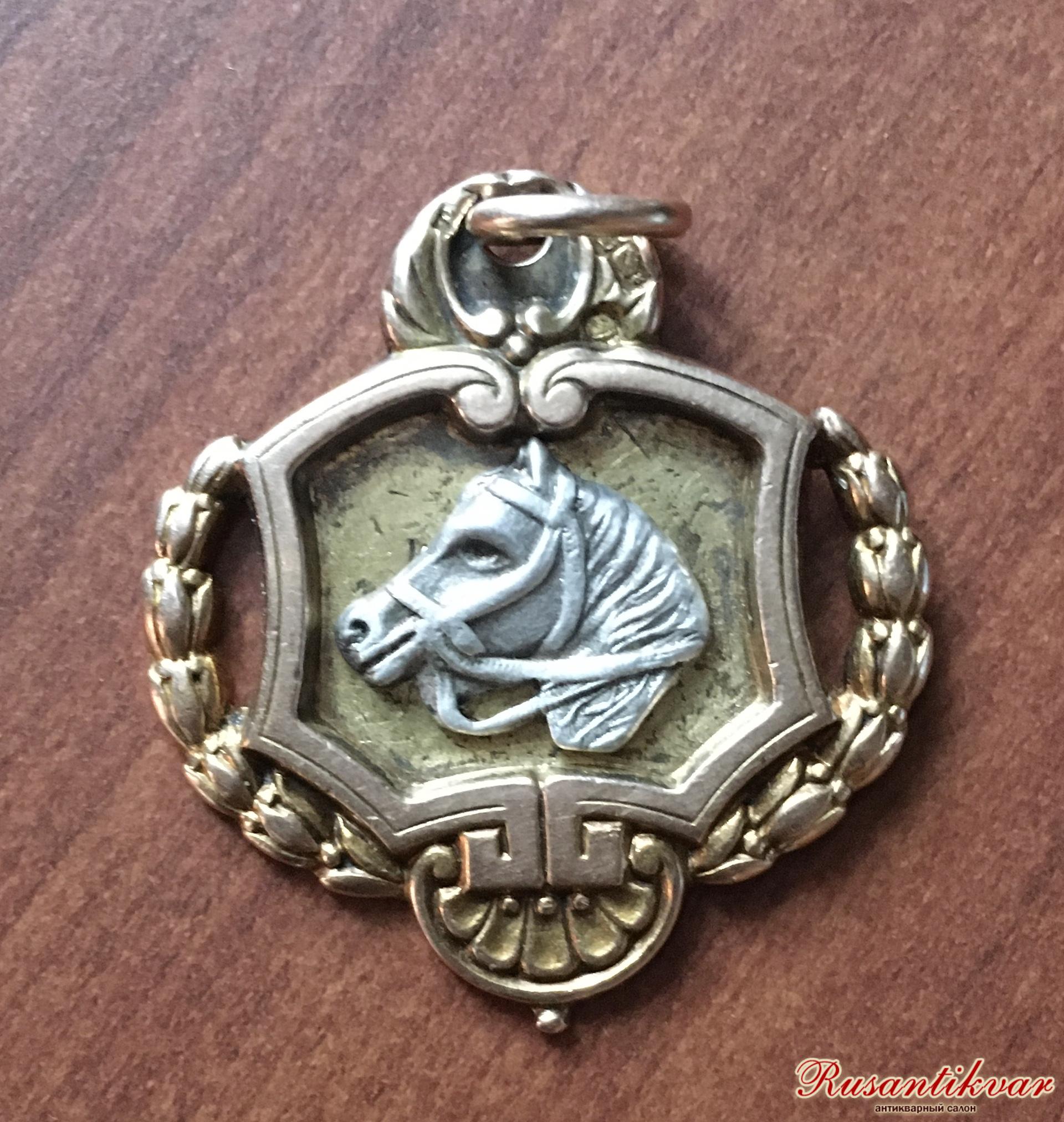 Наградной жетон "Московского общества поощрения рысистого конезаводства".Золото 56 пробы,серебро.Жетон изготовлен после февраля 1917 года.