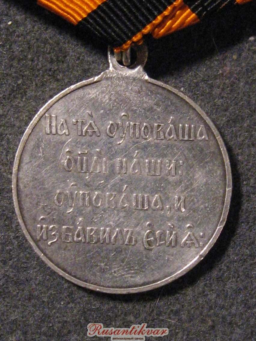 "В награду отличной храбрости и мужества оказанных в делах с неприятелем в минувшую войну 1853-56 гг в Азиатской