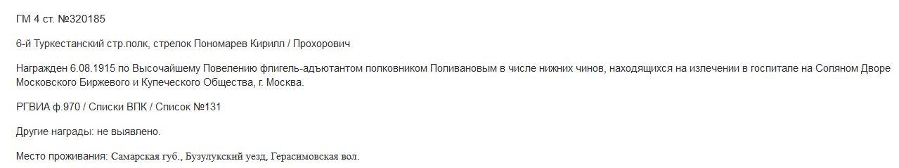 6-й Туркестанский стр.полк, стрелок Пономарев Кирилл / Прохорович