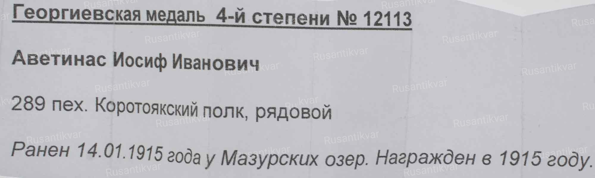 Аветинас Иосиф Иванович-289 пех. Коротоякский полк, рядовой