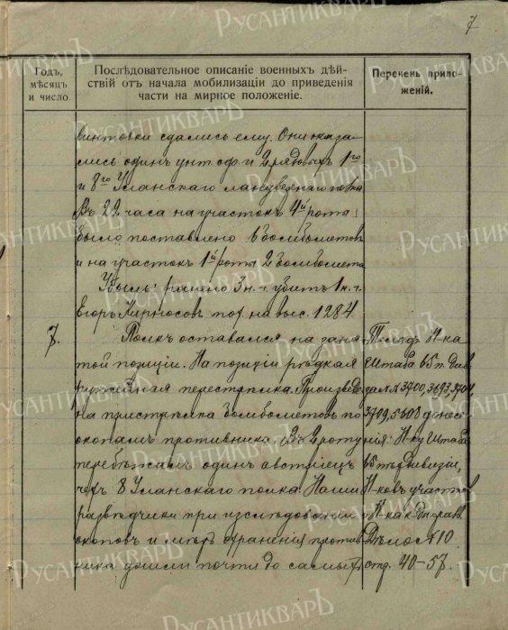 Части вверенного мне корпуса только что вышли из жаркого боя, продолжавшегося непрерывно день и ночь семь суток. Приветствую Вас доблестные полки и батареи с окончанием жестокого боя, покрывшего наш корпус новой славой и давшего в наши руки пленными 27 офицеров, 2 врача, 331 нижних чинов и, кроме того два орудия, пулемет, бомбомет и много неприятельского снаряжения.