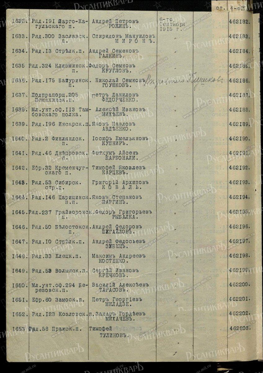Георгиевский Крест 4 ст 462.193 (53 Сибирский стр. полк).
