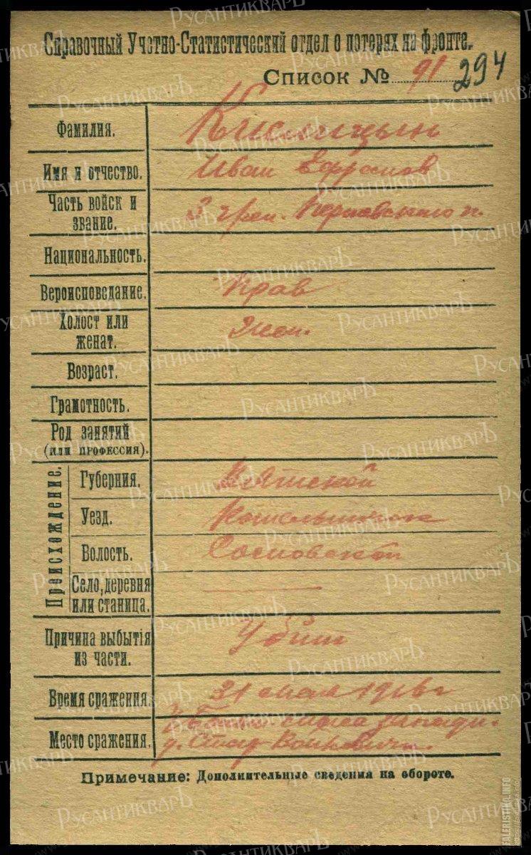 /Приказ по полку от 26.12.1914 №390/