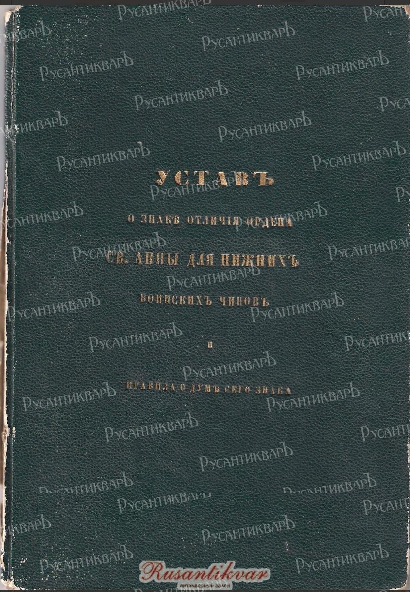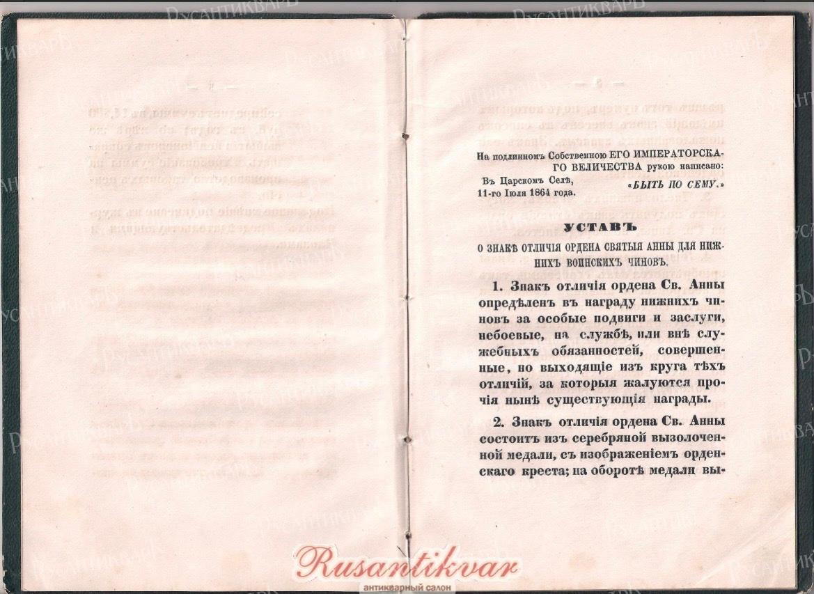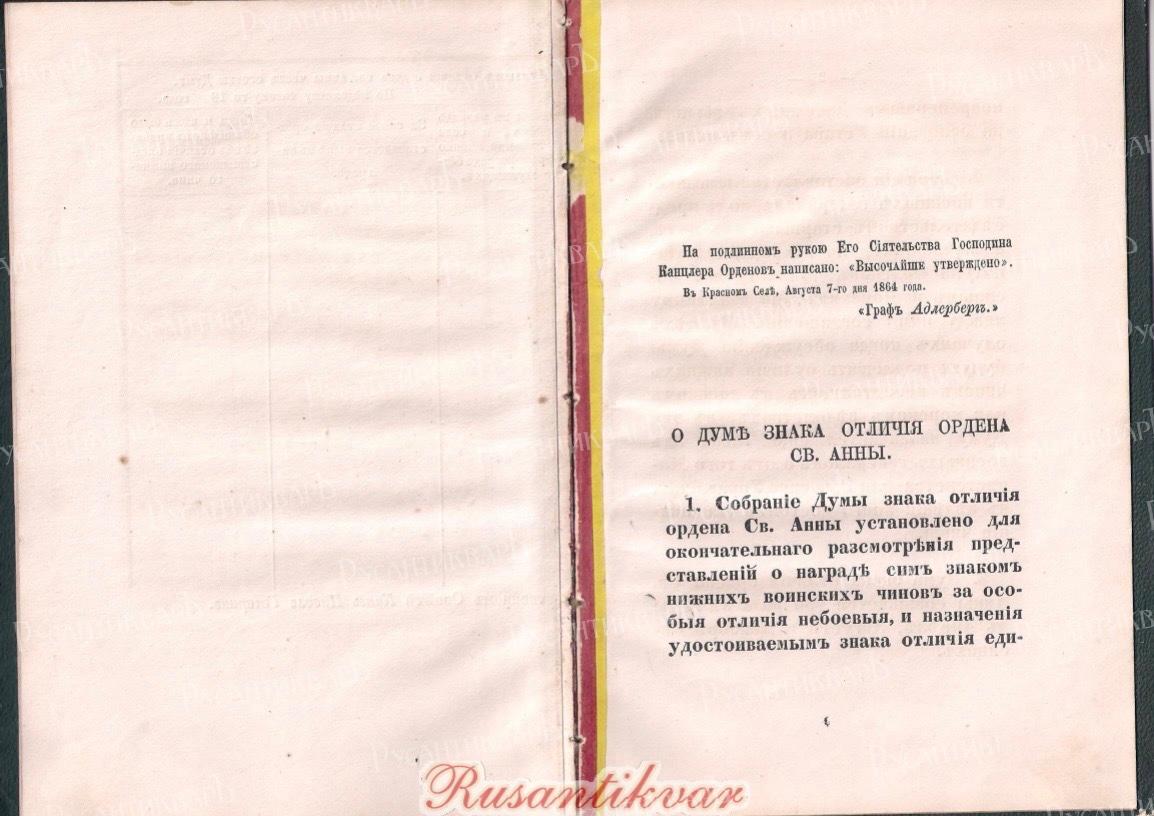 Устав о знаке отличия ордена Св.Анны для нижних чинов и правило о думе сего знака 1864 год".
