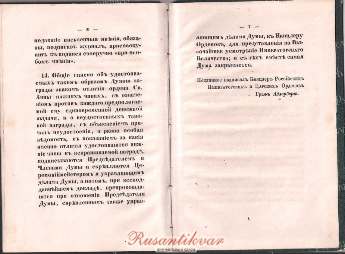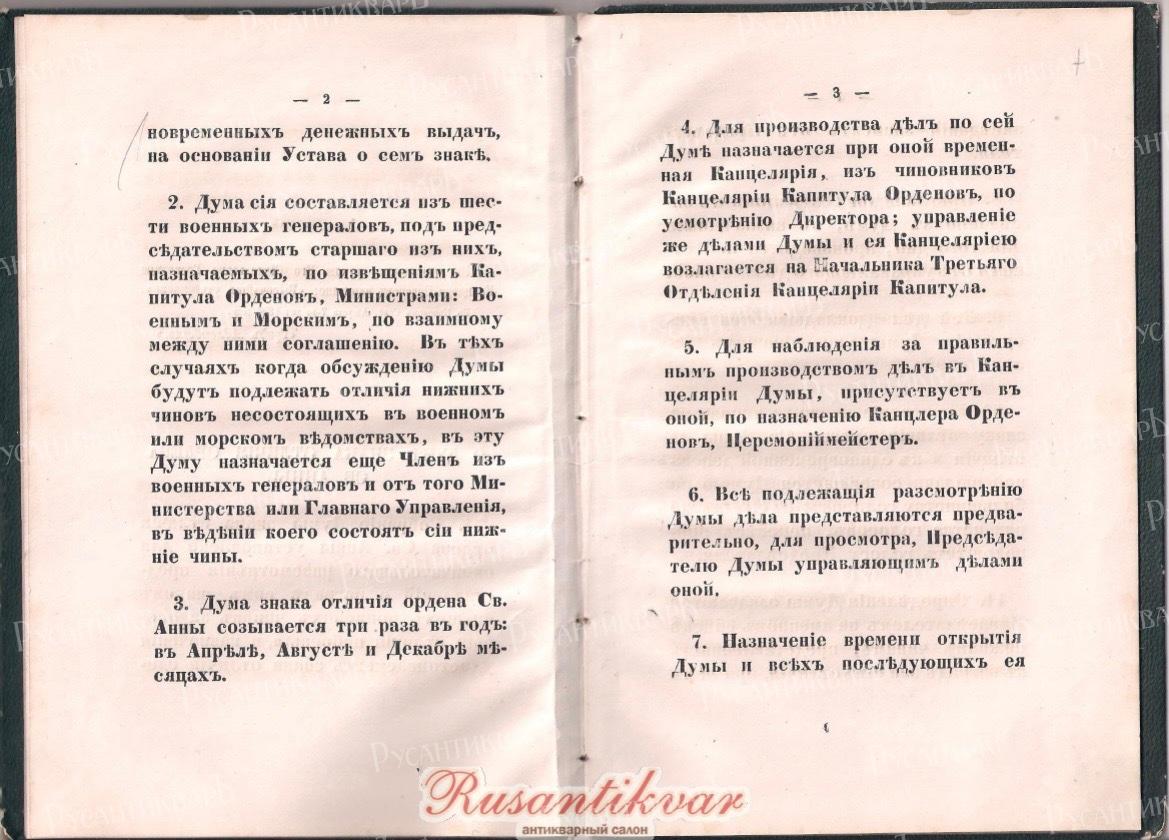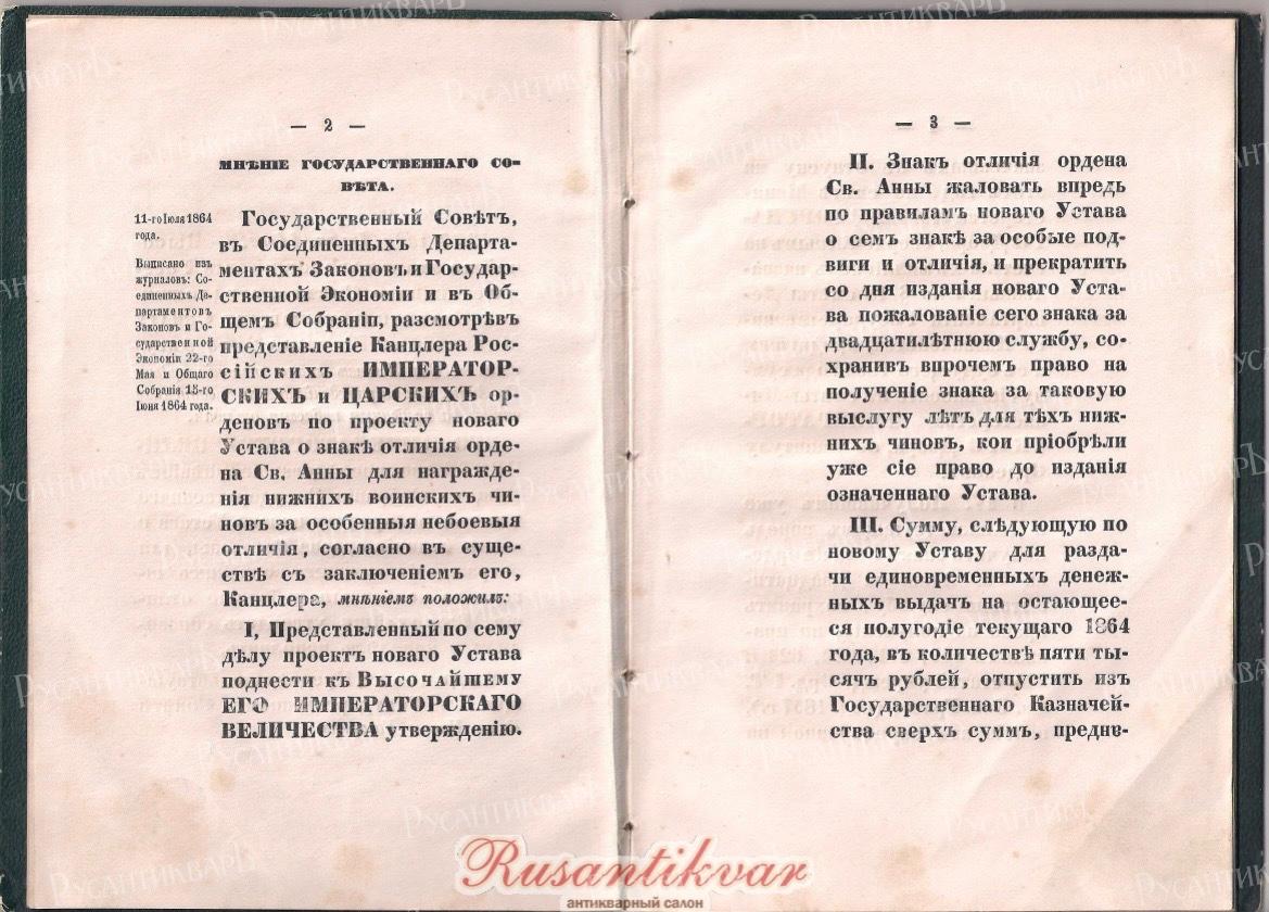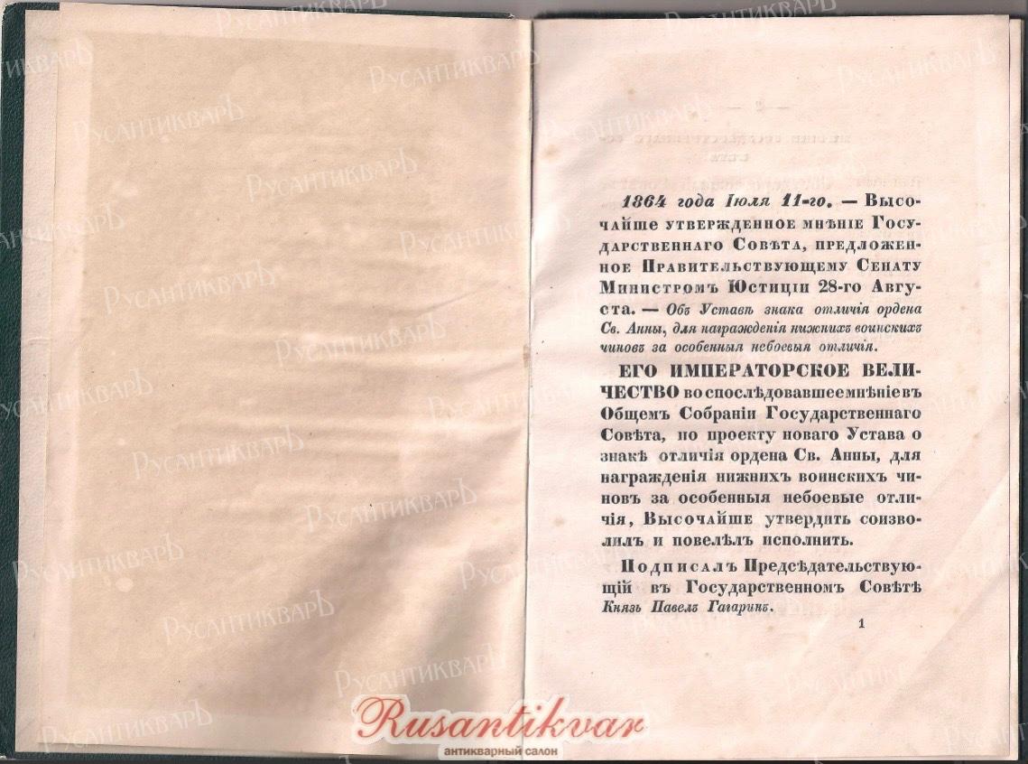 Устав о знаке отличия ордена Св.Анны для нижних чинов и правило о думе сего знака 1864 год".