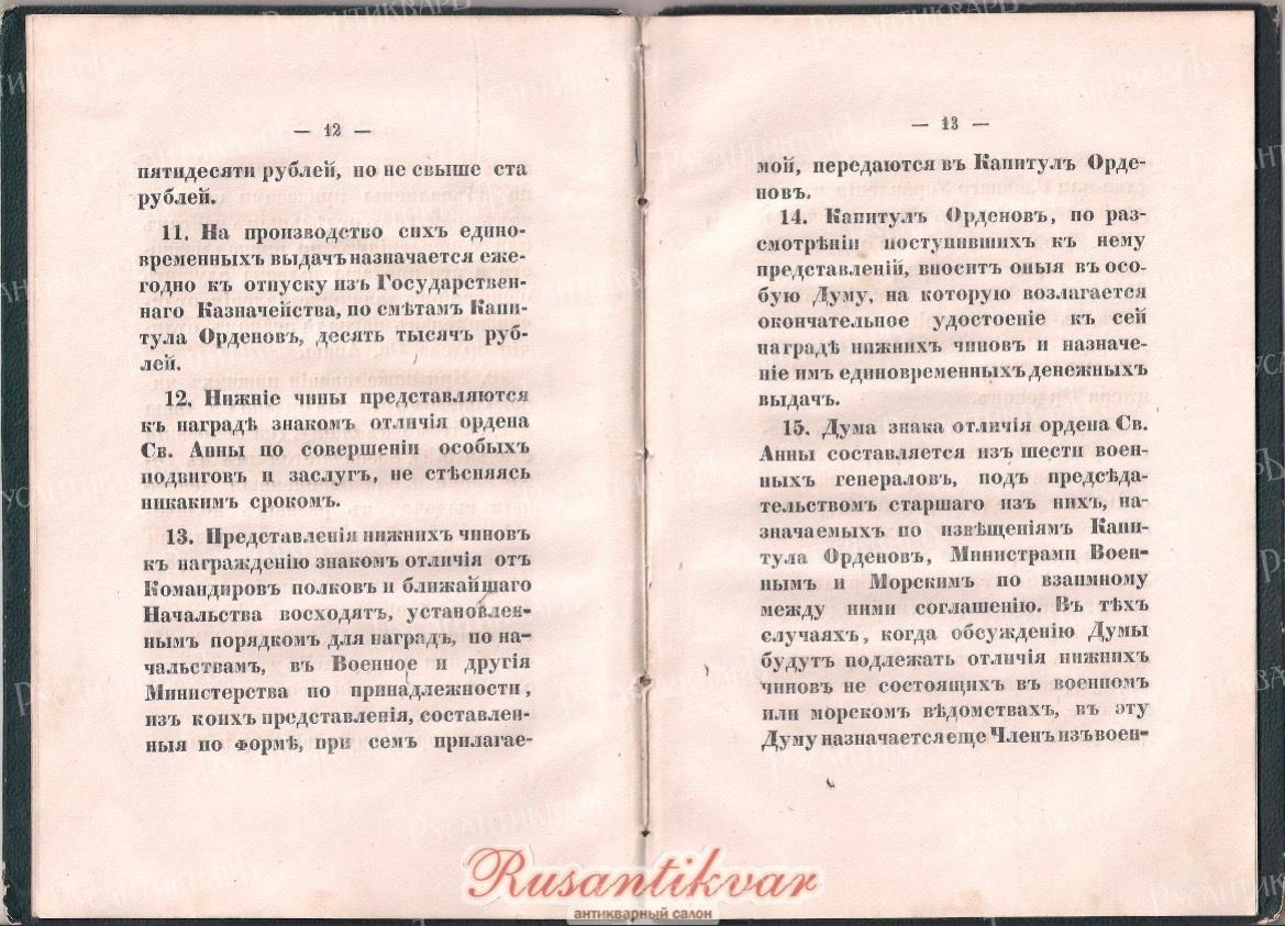 12. Нижние чины представляются к награде знаком отличия ордена Св. Анны по совершении особых подвигов и заслуг, не