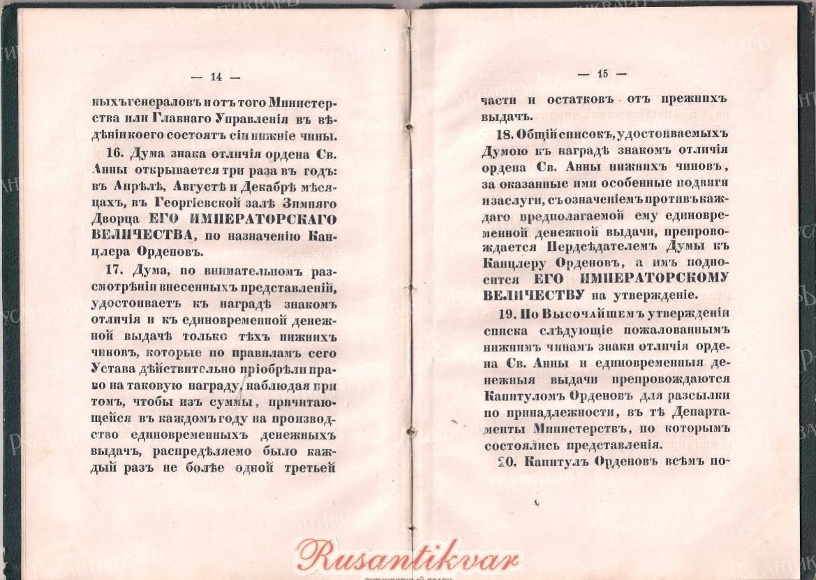 16.Дума знака отличия ордена Св. Анны открывается три раза в год: в Апреле, Августе и Декабре месяцах, в Георгиевской зале