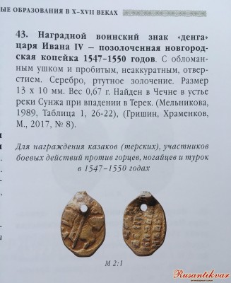 Наградные позолоченные серебряные воинские знаки для служилых людей "по прибору"-стрельцов,пушкарей,затинщиков,казаков и других ,найденные в Чечне в устье р.Сунжи при впадении в р.Терек.Фото из новой книги М.С.Селиванова.