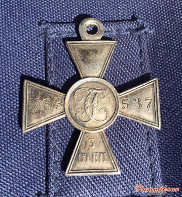 "Георгиевским крестом пожалован 5 декабря 1915 года Его Высочеством Великим князем Георгием Михайловичем за разновременно оказанные отличия в делах с неприятелем".
