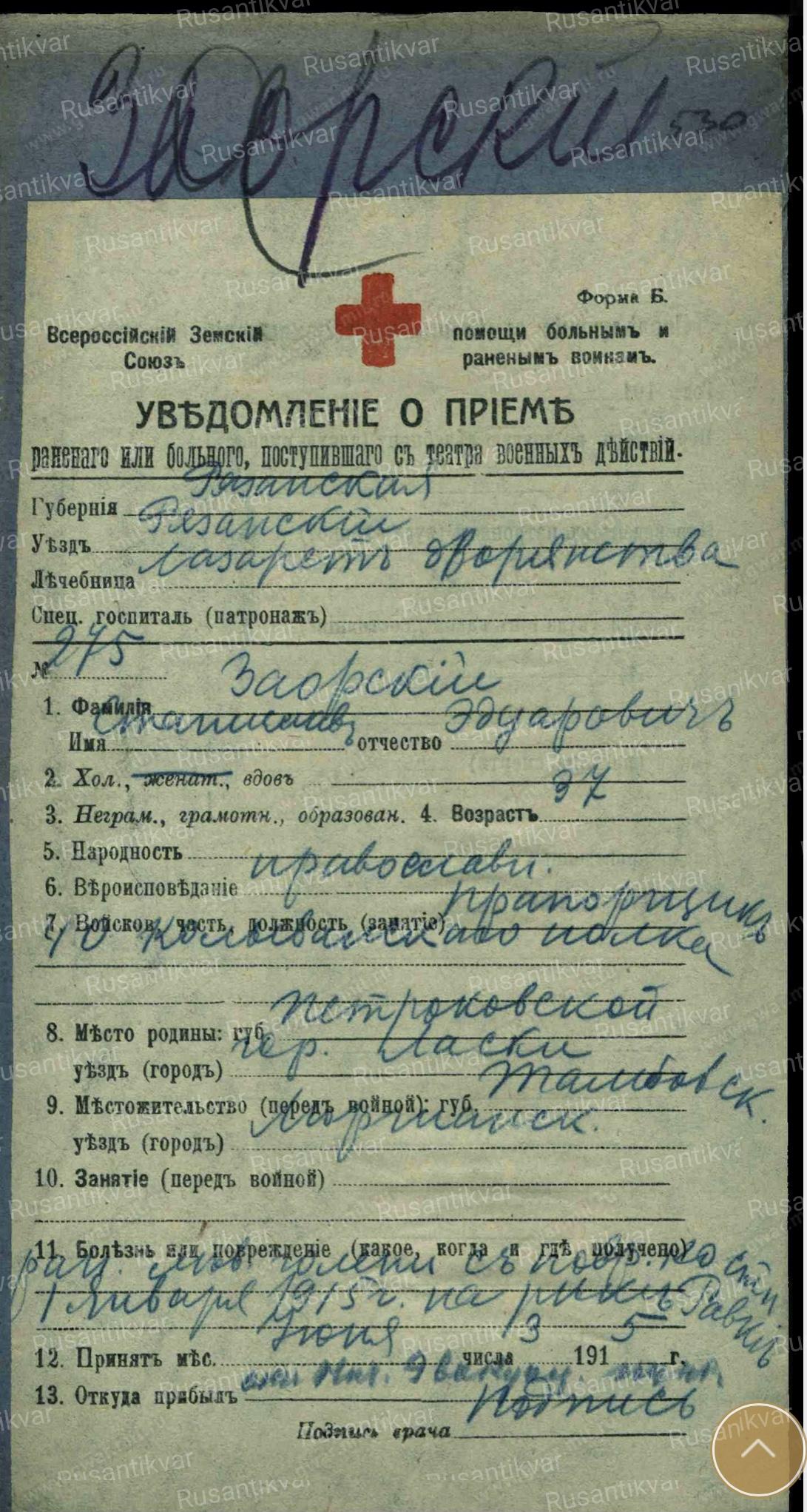 Заорский Станислав Эдуардович-40 пехотный Колыванский полк,подподпрапорщик,пулемётная команда.За отличие в бою 18.11.1914 у д.Недвзяды.