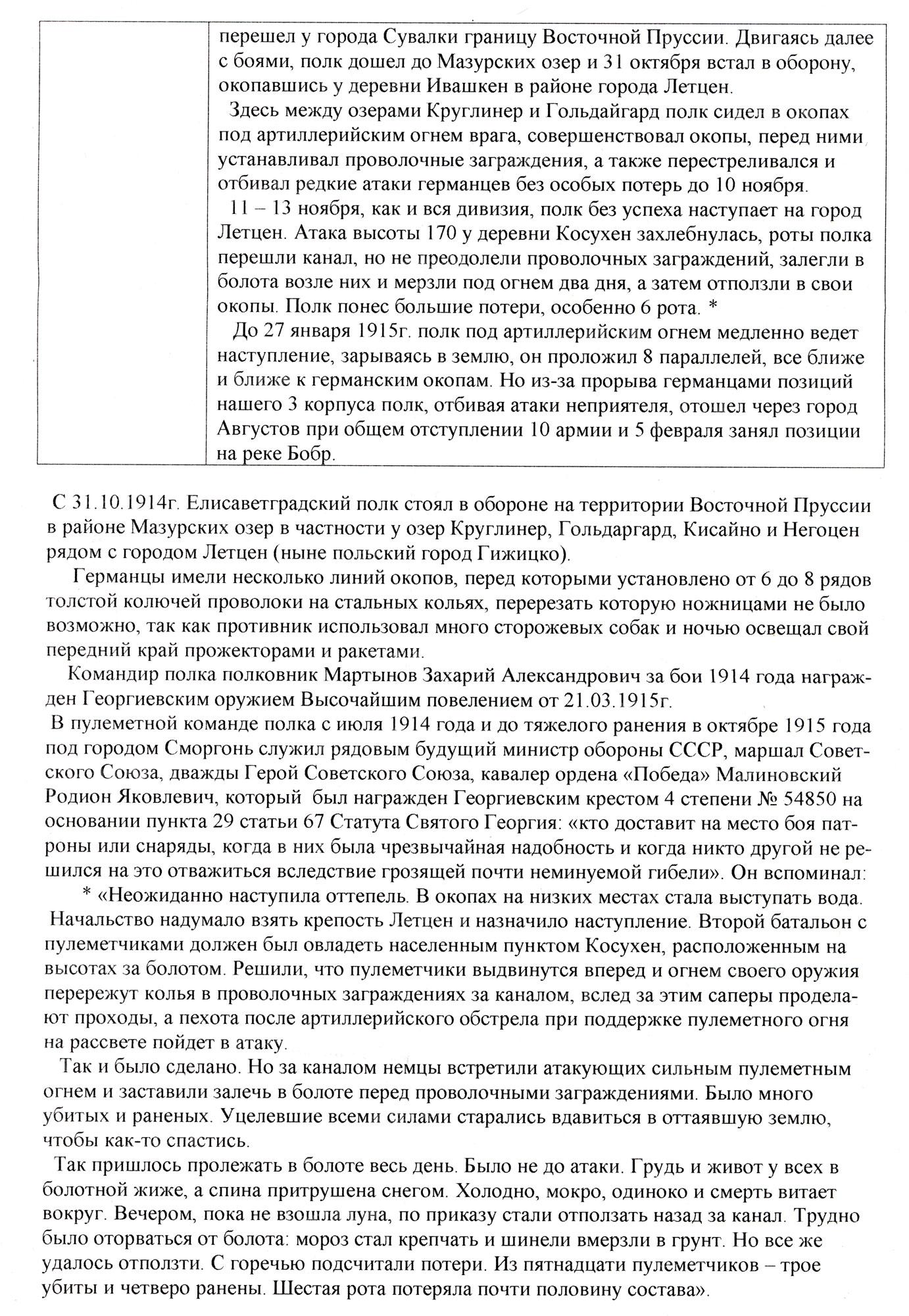 Георгиевский крест 4 степени 482835 МАЛАХОВ Иван Степанович — 83 арт. бригада, 3 батарея, мл фейерверкер. Награжден 2.10.1915 в д. Староселье (Погост-Загородской волости, Пинского уезда. Минской губернии) от Имени Государя Императора. Его Императорским Высочеством Великим Князем Георги¬ем Михайловичем за отличие в боях 16-го и 17.08.1915 у д.д. Хабовичи и Мал. Болота.