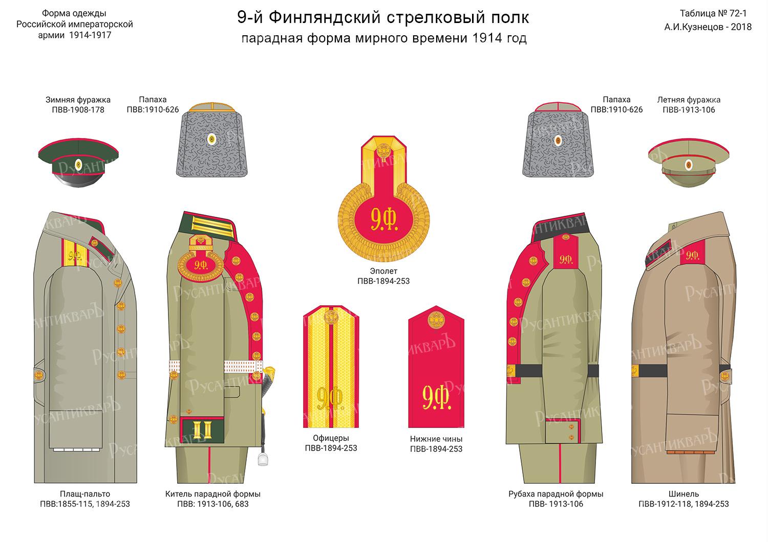 20.12.1910г. – сформирован из 223-го пехотного резервного Коротоякского полка Входил в состав 3-й Финляндский стрелковой дивизии Дислокация: г. Тавастгус 2 батальона 3 батальона с 8(21).05.1915г 24.01.1917г. – выделен кадр на формирование 5-й Финляндской стрелковой дивизии Награды: Пожаловано 27.03.1911г. Юбилейное знамя образца 1900 года с образом Спаса Нерукотворного и надписью - 1811-1911, кайма малиновая. Александровская Юбилейная лента. На древко знамени установлена скоба с надписью: 1811. Воронежский Внутренний Гарнизонный батальон, 1911. 9-го Финляндского Стрелкового полка.