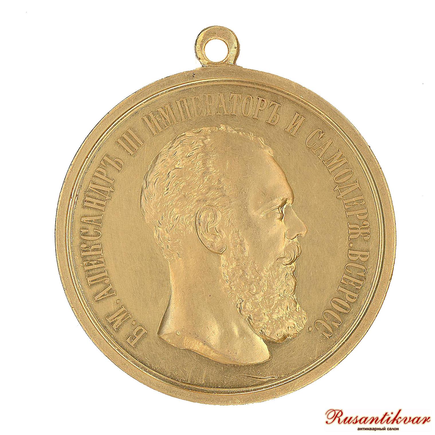 Шейная медаль "За Усердие" с портретом Императора Александра III, золото 75,2 гр.
