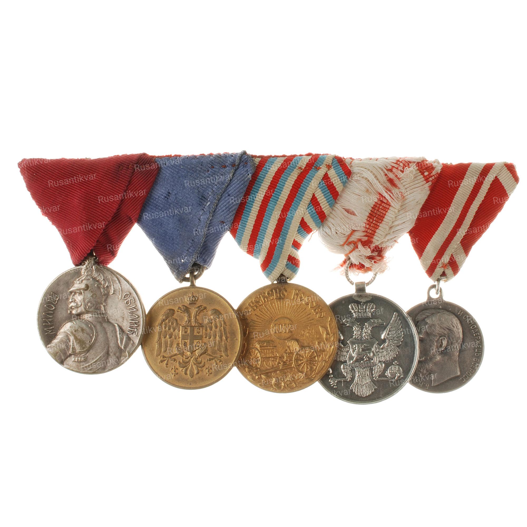 1 Мировая война. Наградная колодка сербского военного. Одна из медалей "За Усердие" с портретом Императора Николая II.