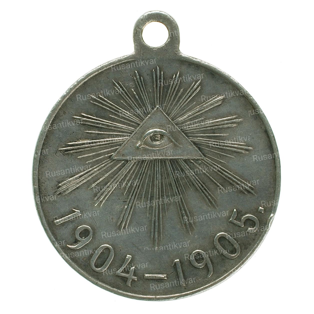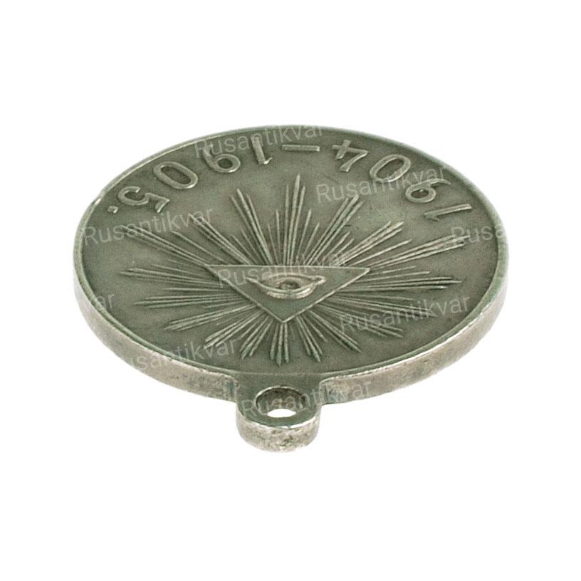 На лицевой стороне медали изображено Всевидящее око, окруженное лучами. В нижней части, вдоль бортика, надпись: «1904-1905.». На оборотной стороне горизонтальная надпись славянским шрифтом в пять строк: