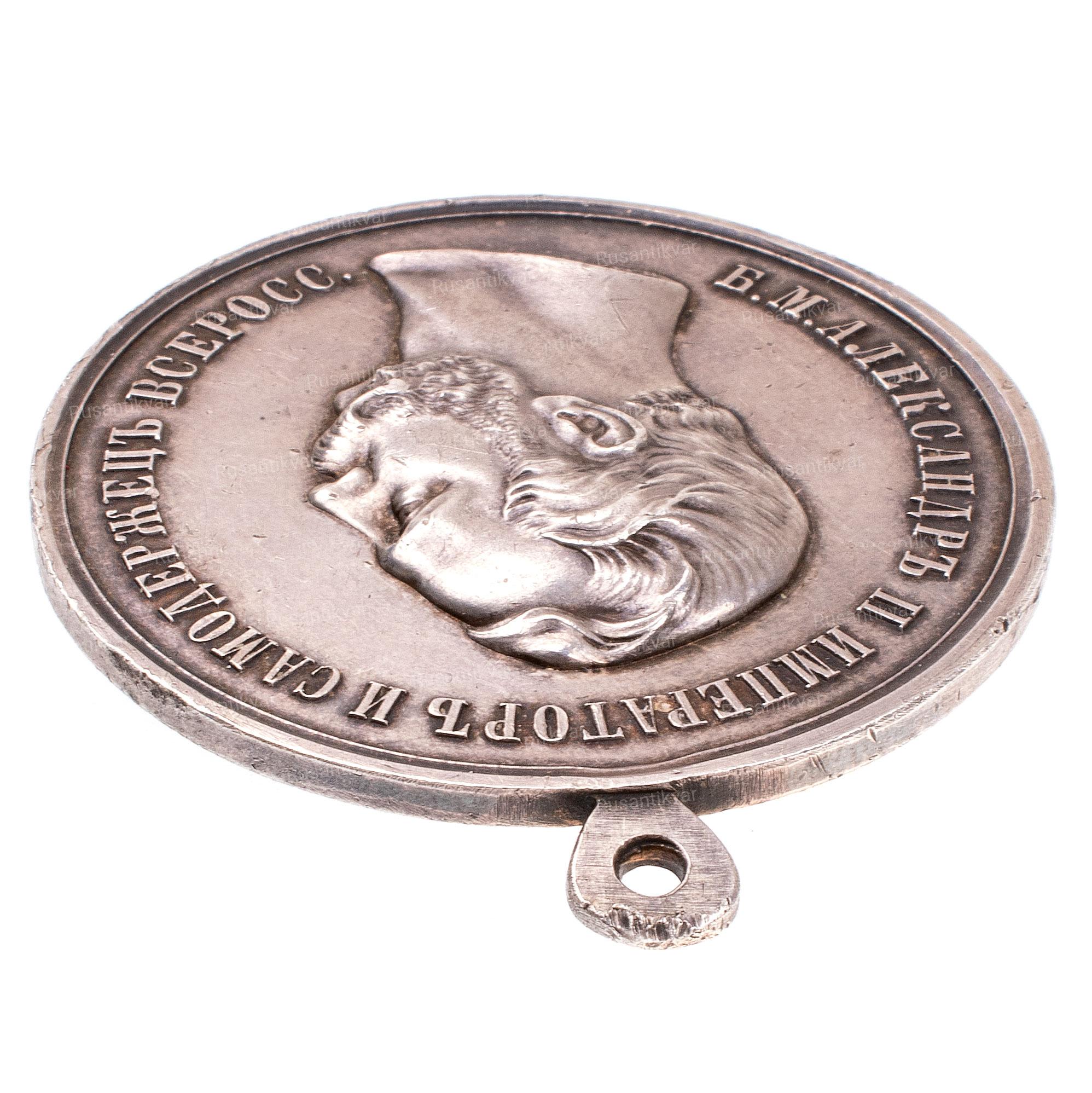 Шейная медаль "За Усердие" с портретом Императора Александра II (профиль вправо ) в обрезе инициалы медальера П.М. Петр Мещеряков (работал в 1854 - 1879 гг.) Вариант с надписью (САМОДЕРЖЕЦЪ)