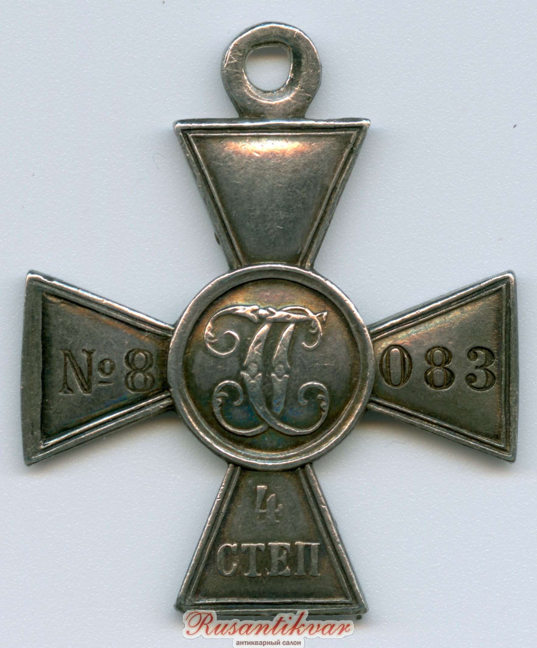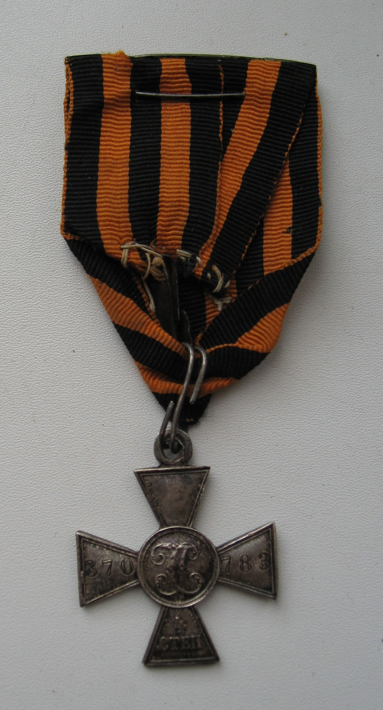 Приказом по 1-й Армии от 26 Августа 1914 г. за № 66 за отличие в делах против неприятеля награжден Георгиевским крестом 4 ст. за № 8083. Приказ по полку № 36 - 26 августа 1914 г.