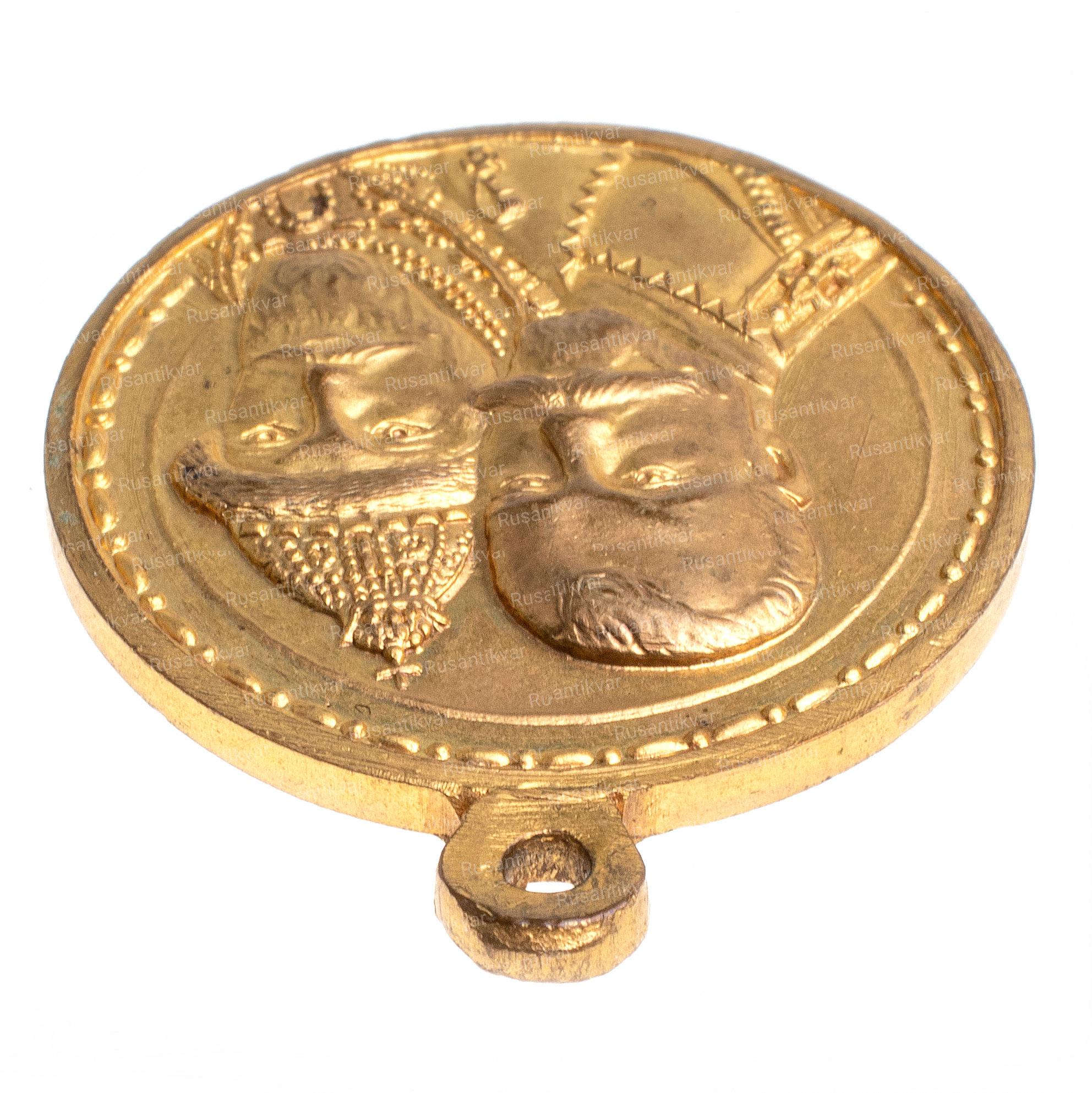 Вензель "А" на погоне Императора Николая II.Крест на шапке Михаила не касается сплошной черты.Пунктирная линия на аверсе начинается с точки и заканчивается пунктиром. На обрезе медали инициалы мастерской "ГРУ".