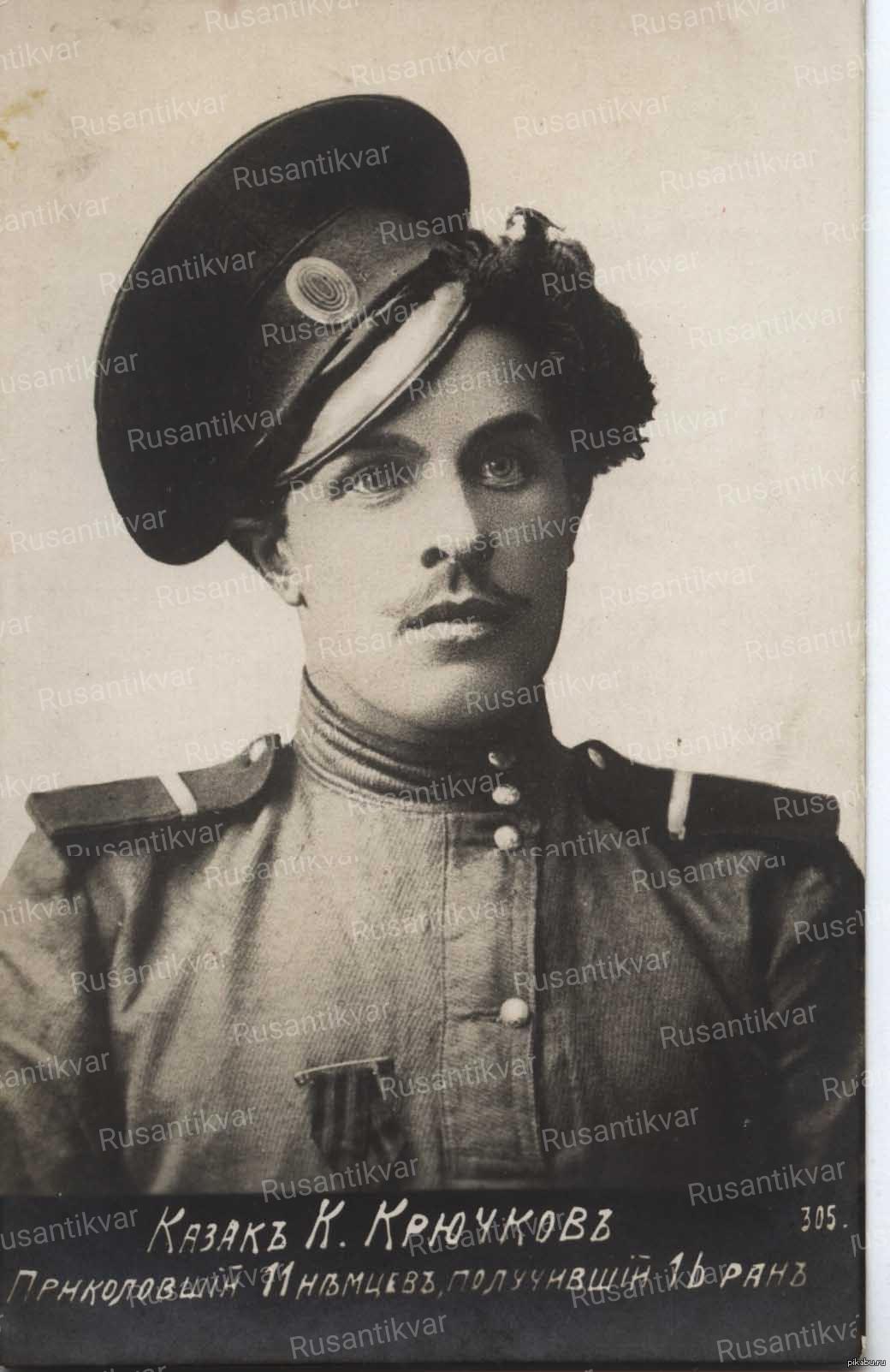 «... Часов в десять утра направились мы от города Кальварии к имению Александрово. Нас было четверо — я и мои товарищи: Иван Щегольков, Василий Астахов и Михаил Иванков. Начали подыматься на горку и наткнулись на немецкий разъезд в 27 человек, в числе их офицер и унтер-офицер. Сперва немцы испугались, но потом полезли на нас. Однако мы их встретили стойко и уложили несколько человек. Увертываясь от нападения, нам пришлось разъединиться. Меня окружили одиннадцать человек. Не чая быть живым, я решил дорого продать свою жизнь. Лошадь у меня подвижная, послушная. Хотел было пустить в ход винтовку, но второпях патрон заскочил, а в это время немец рубанул меня по пальцам руки, и я бросил винтовку. Схватился за шашку и начал работать. Получил несколько мелких ран. Чувствую, кровь течет, но сознаю, что раны неважныя. За каждую рану отвечаю смертельным ударом, от которого немец ложится пластом навеки. Уложив несколько человек, я почувствовал, что с шашкой трудно работать, а потому схватил их же пику и ею поодиночке уложил остальных. В это время мои товарищи справились с другими. На земле лежали двадцать четыре трупа, да несколько не раненных лошадей носились в испуге. Товарищи мои получили легкие раны, я тоже получил шестнадцать ран, но все пустых, так — уколы в спину, в шею, в руки. Лошадка моя тоже получила одиннадцать ран, однако я на ней проехал потом назад шесть верст. Первого августа в Белую Олиту прибыл командующий армией генерал Ренненкампф, который снял с себя георгиевскую ленточку, приколол мне на грудь и поздравил с первым георгиевским крестом...».