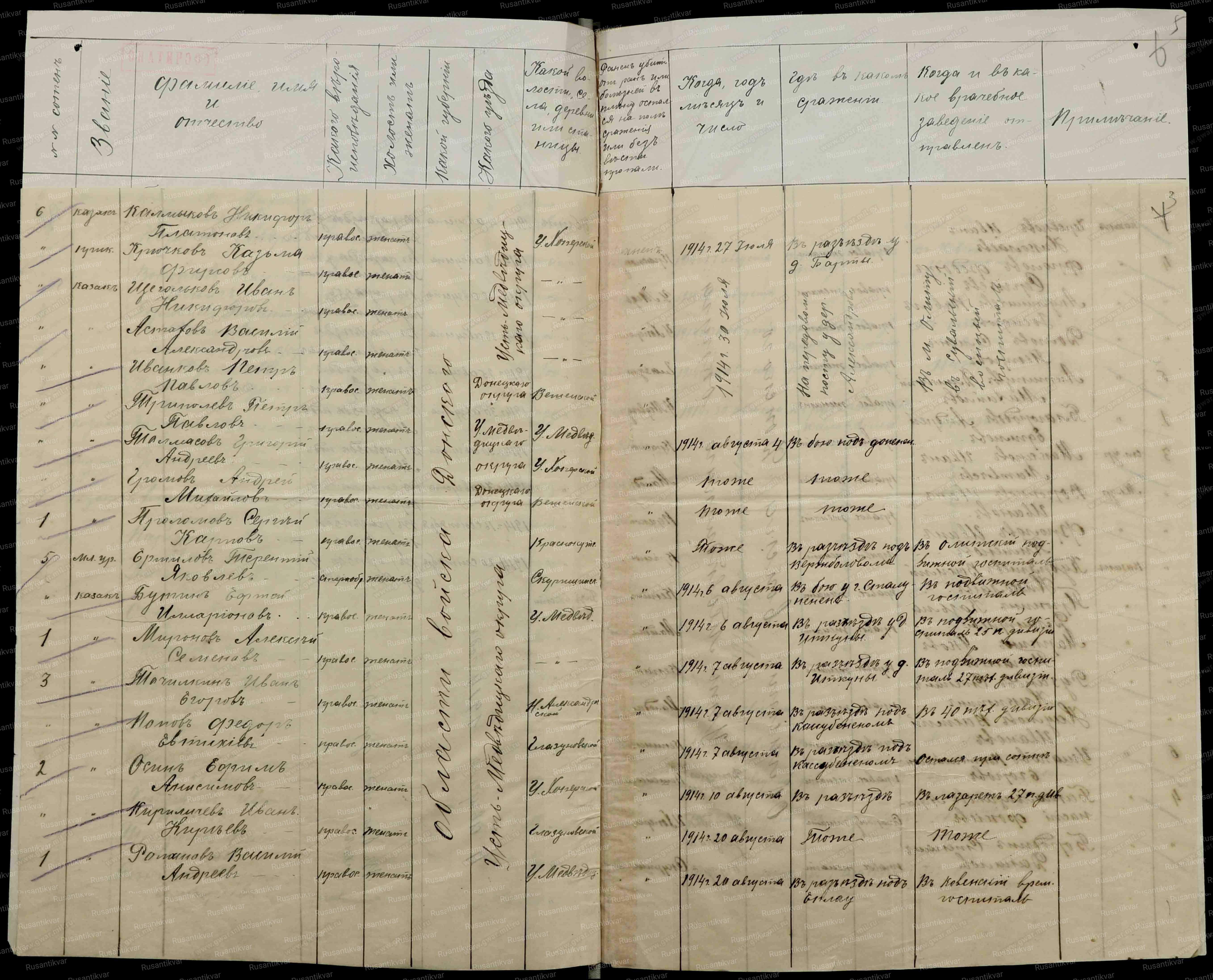 Именной список потерь нижних чинов 3 Донского Ермака Тимафеевича казачьего полка с 18 июля по 1 октября 1914 года.РГВИА фонд 16196,опись №1.