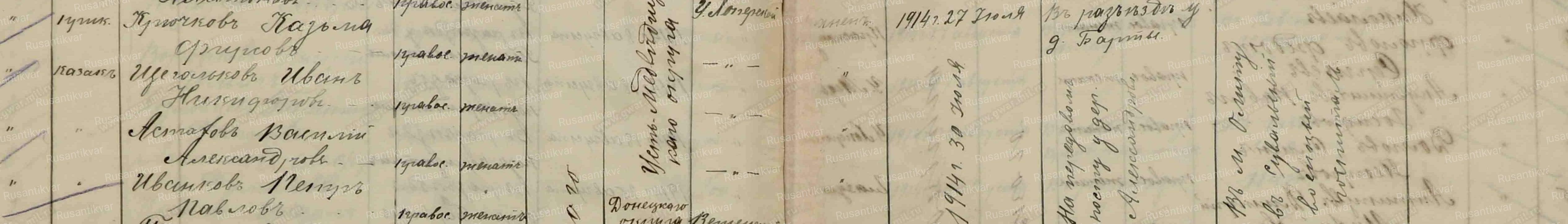 Имя казака Иванкова Михаила Павловича в этом документе ошибочно указано как Петр.