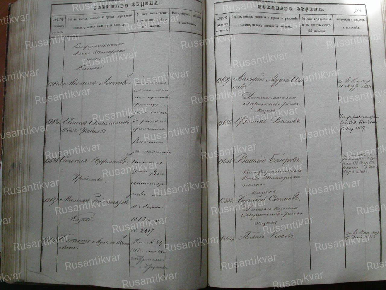 ЗОВО б/ст.0 ст. № 13637. 7-й Донской казачий Харитонова полк, казак Смирнов Малафей. За отличные подвиги, оказанные против французских войск в разных сражениях. Внесен с отношения Инспекторского Департамента Военного Министерства от 11 апреля 1813 года за № 2417