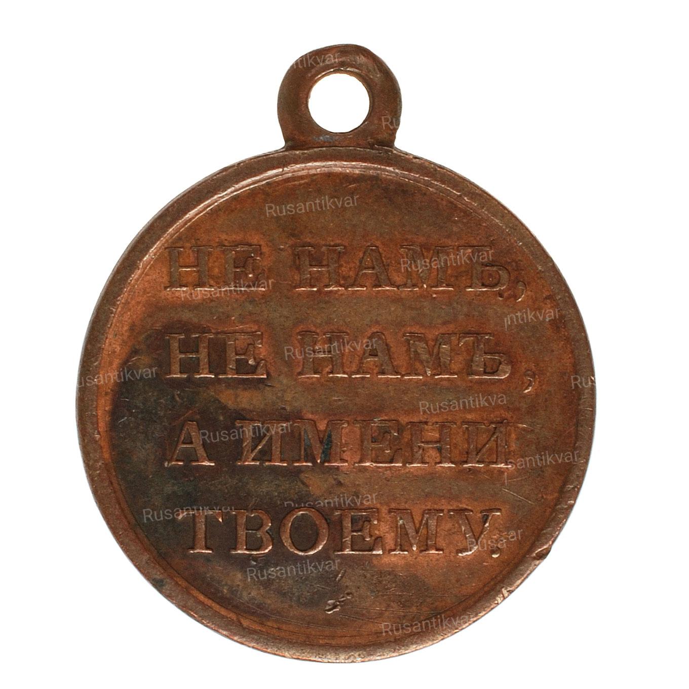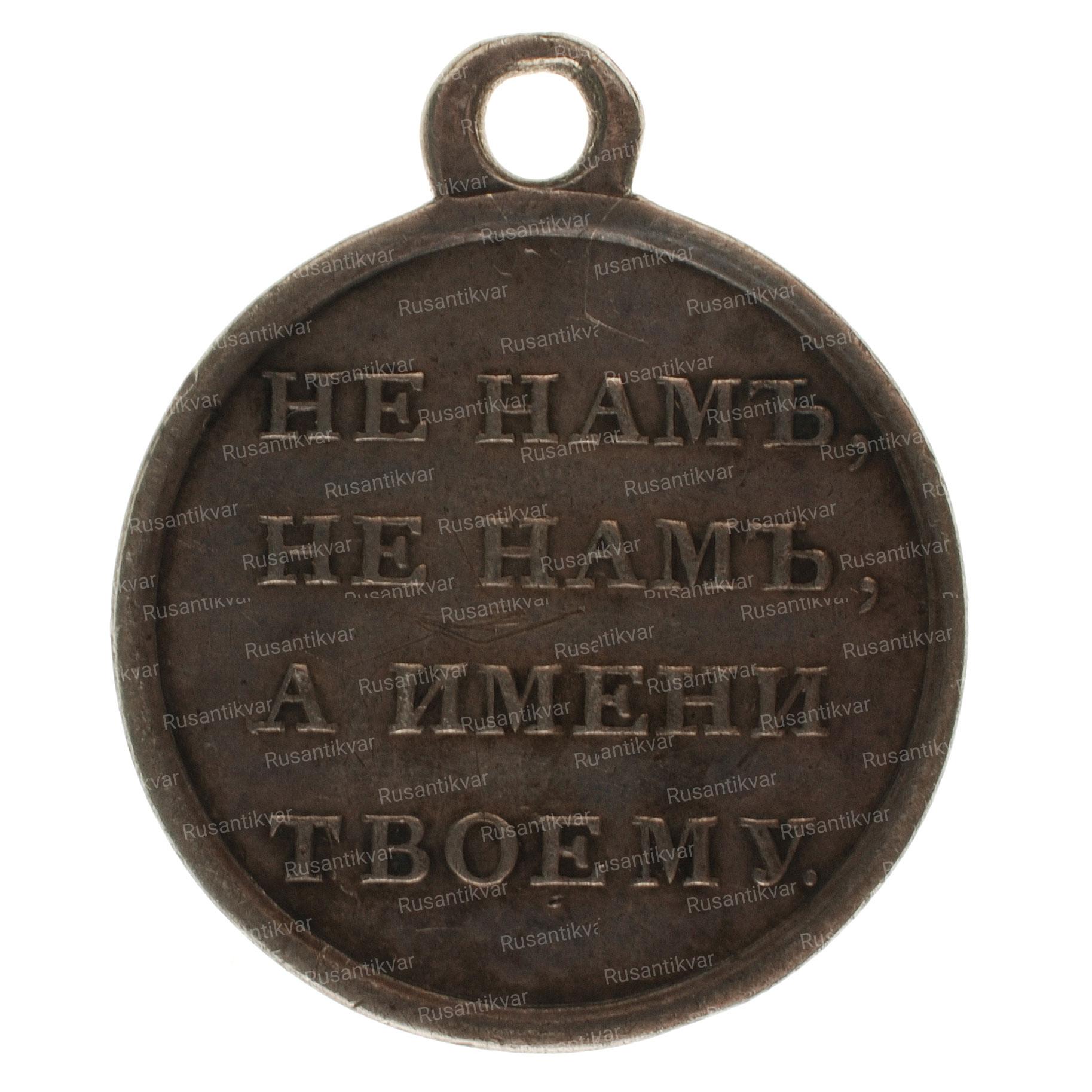 На оборотной стороне медали прямая четырехстрочная надпись, позаимствованная из Псалтири: «НЕ НАМЪ — НЕ НАМЪ — А ИМЕНИ — ТВОЕМУ.»