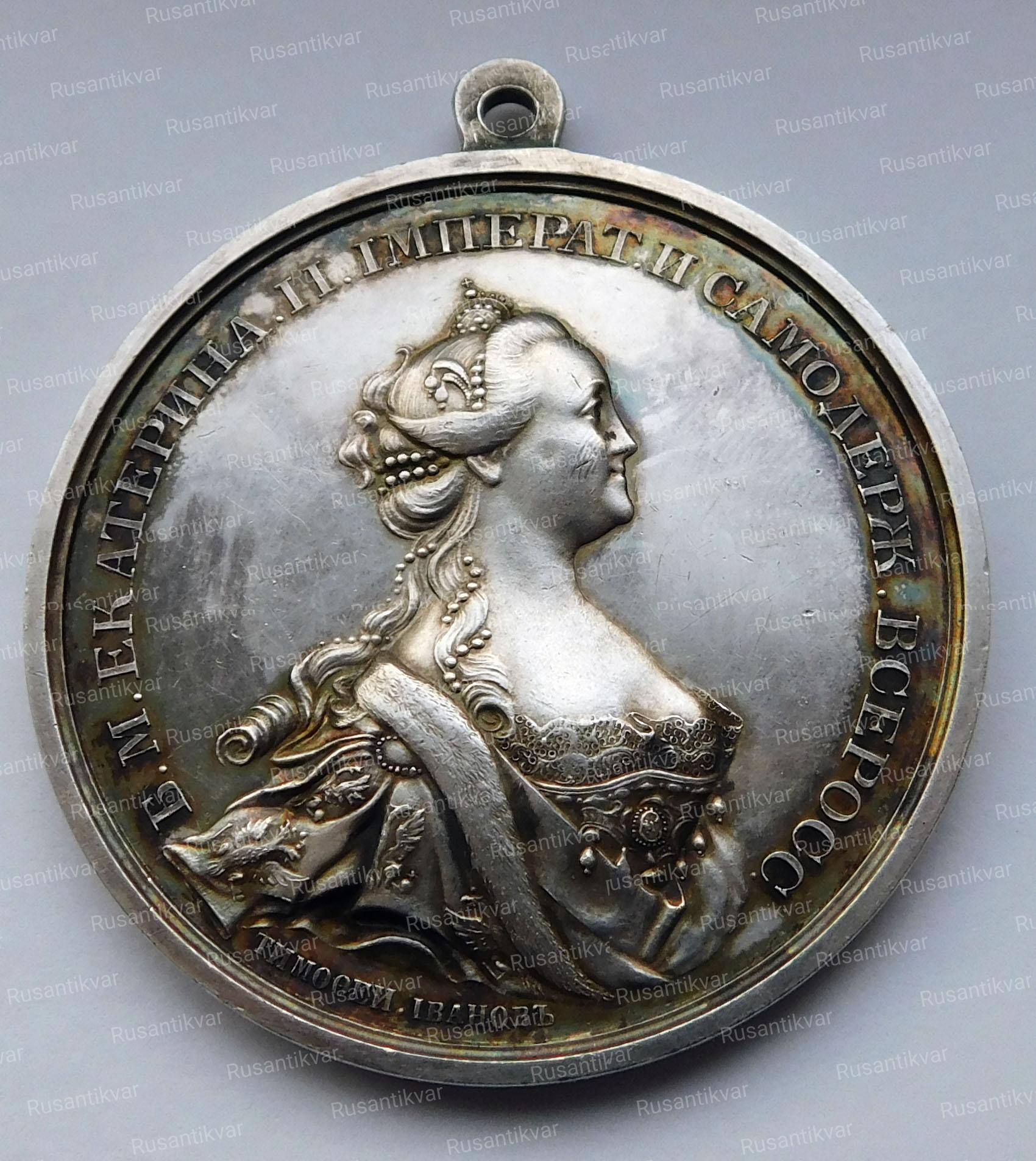 Медаль была учреждена в царствование Императрицы Екатерины II не для ношения.